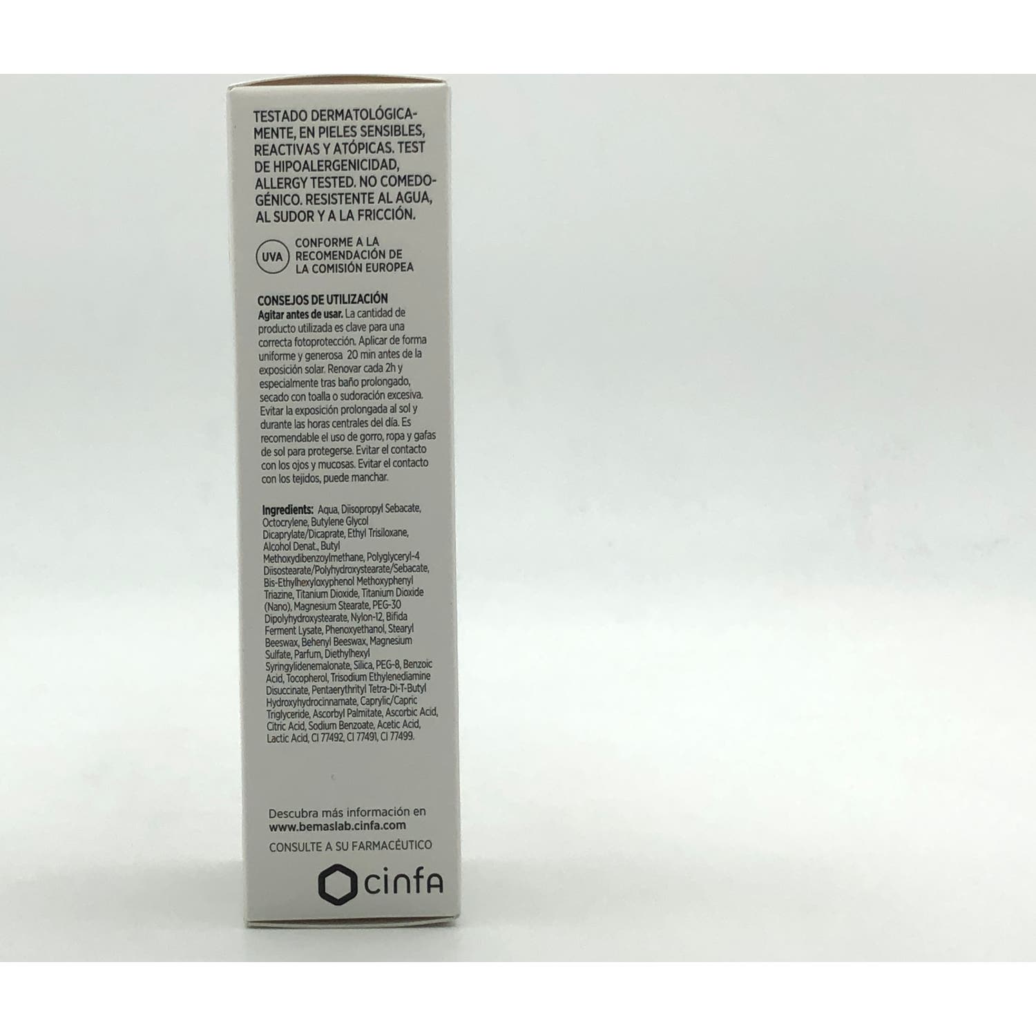 El producto tiene un nivel de factor SPF50+. Es fácil de aplicar gracias al formato de spray o bruma, y es muy resistente al agua. Además, no contiene perfume ni parabenos.