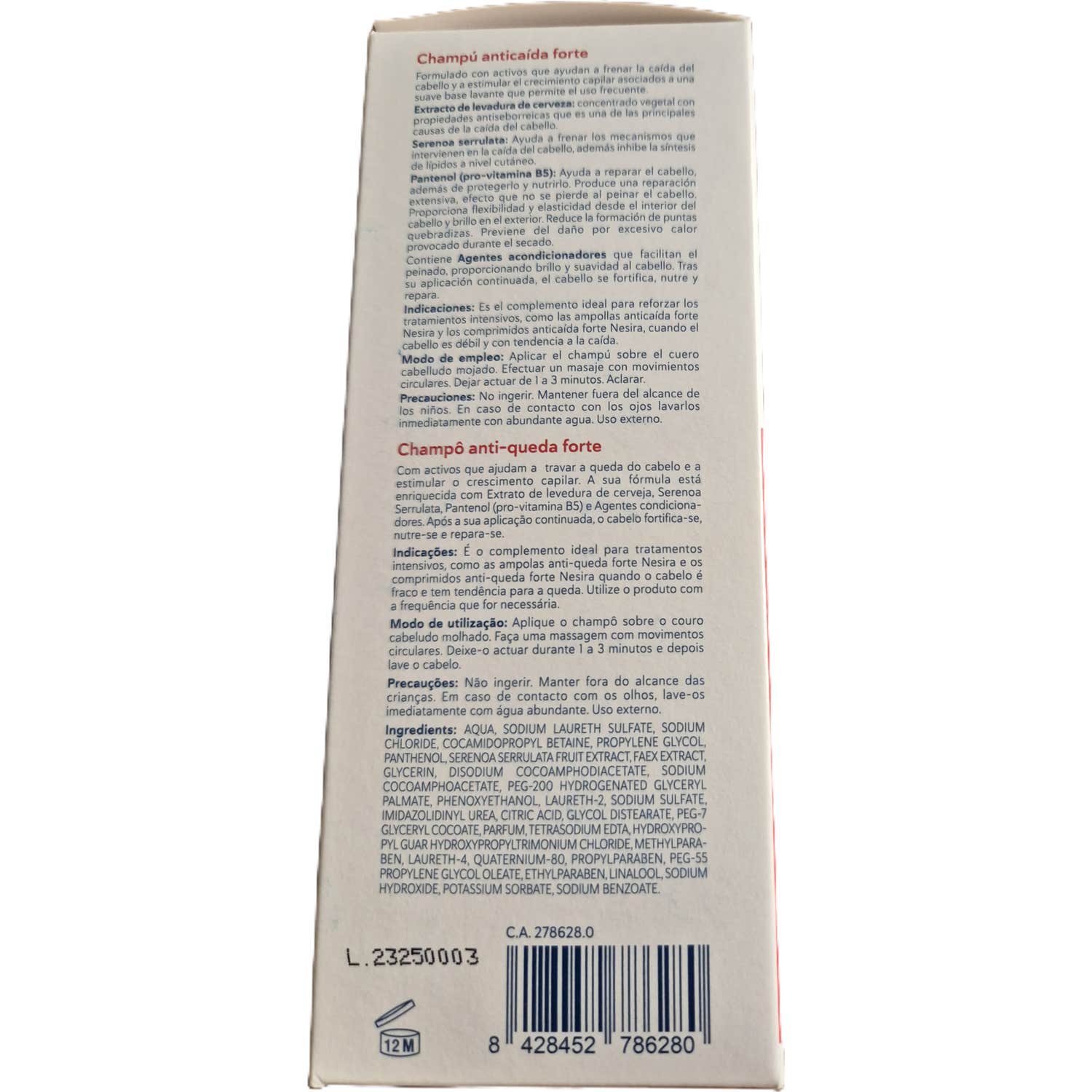 Tratamiento anticaída forte con activos anticaída. Incluye: ampollas anticaída forte 15ud y champú anticaída forte 200ml. Ampollas que revitalizan el cabello y frenan la caída del mismo acompañado de regalo de un champú preparado para utilizarlo de manera frecuente, en el cuidado del cuero cabelludo y frena la caída de cabello. Con las proteínas de soja ayuda a fortalecer el cabello y estimular su crecimiento, gracias a su alta concentración de sales minerales, aminoácidos y péptidos. Con el extracto de levadura de cerveza y sus propiedades antiseborreicas logramos ralentizar la caída de cabello. Mantenlo guardado en un ambiente fresco y seco, siempre alejado del alcance de los niños.