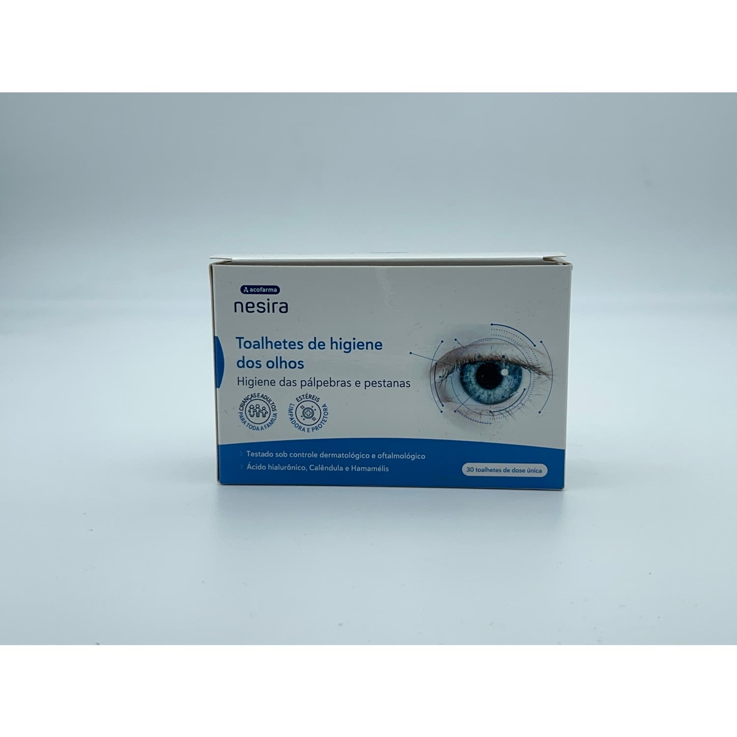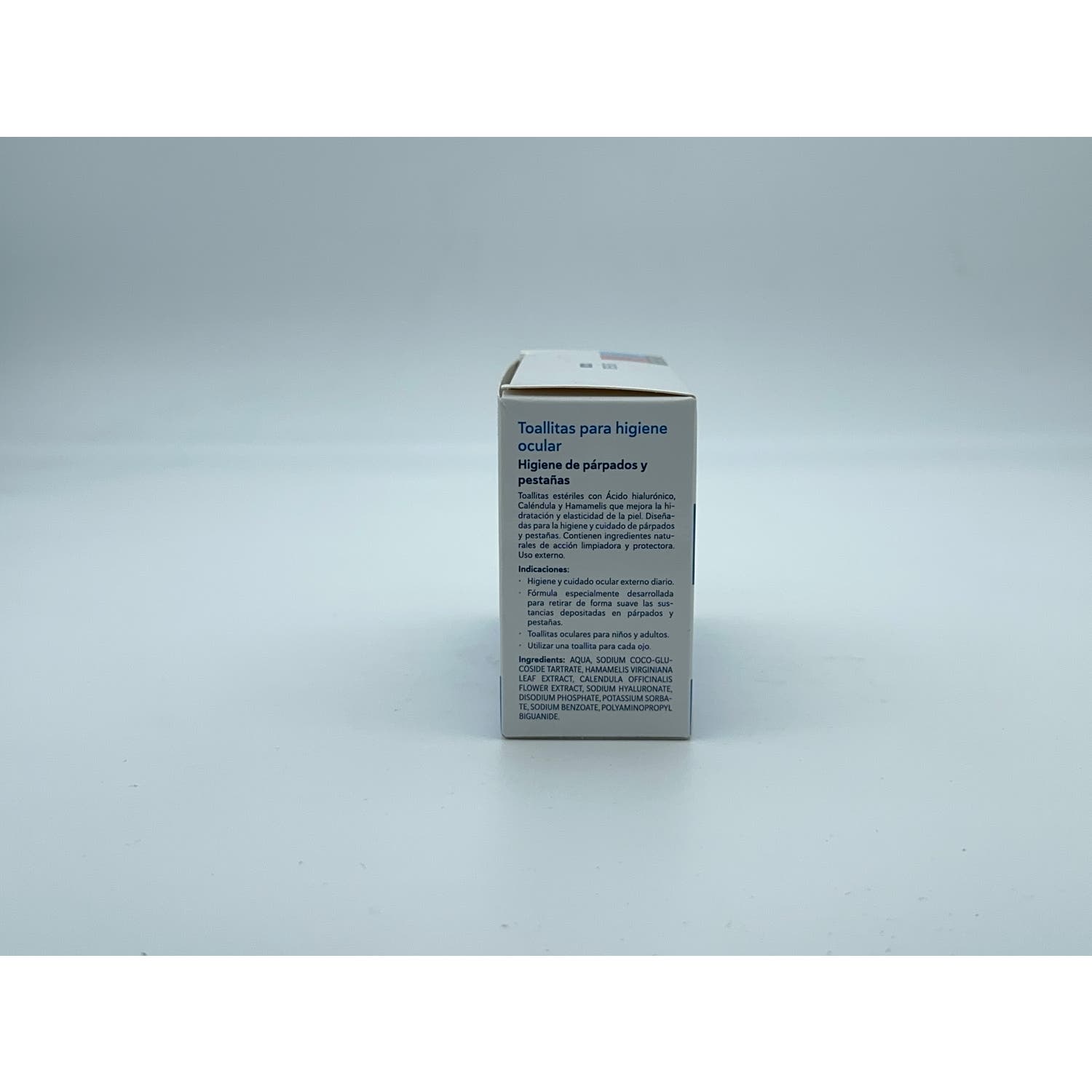 Toallitas estériles y desechables, diseñadas para mantener la higiene ocular. Impregnadas en una fórmula a base de aguas destiladas vegetales, ácido hialurónico, extracto natural de caléndula y hamamelis. Contribuyen a calmar irritaciones en los ojos. Ayudan a retirar impurezas, sustancias depositadas en párpados y suciedad, mientras protegen de la polución. Adecuadas para uso familiar. Debe utilizarse 1 toalla por ojo. Sin conservantes ni fosfatos.