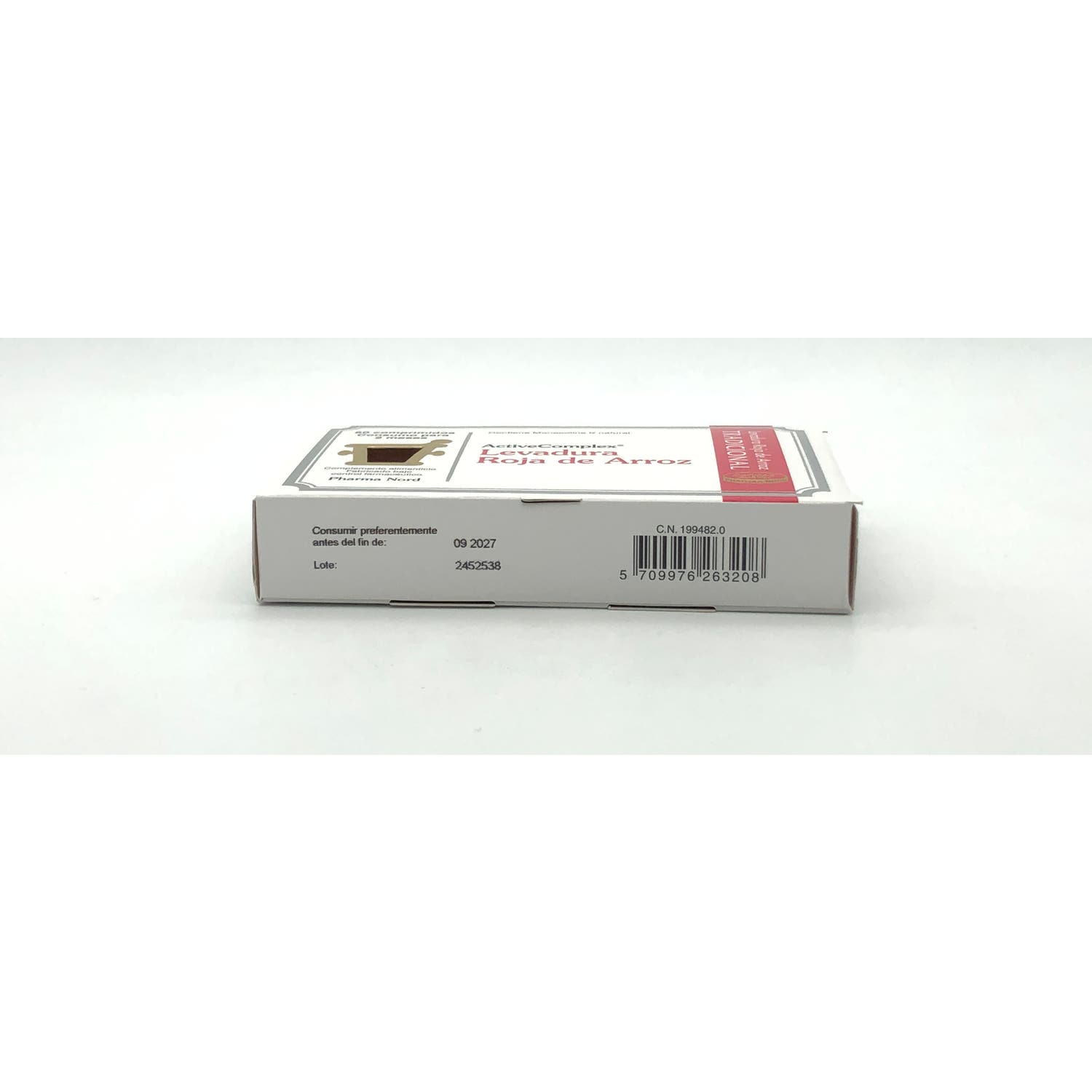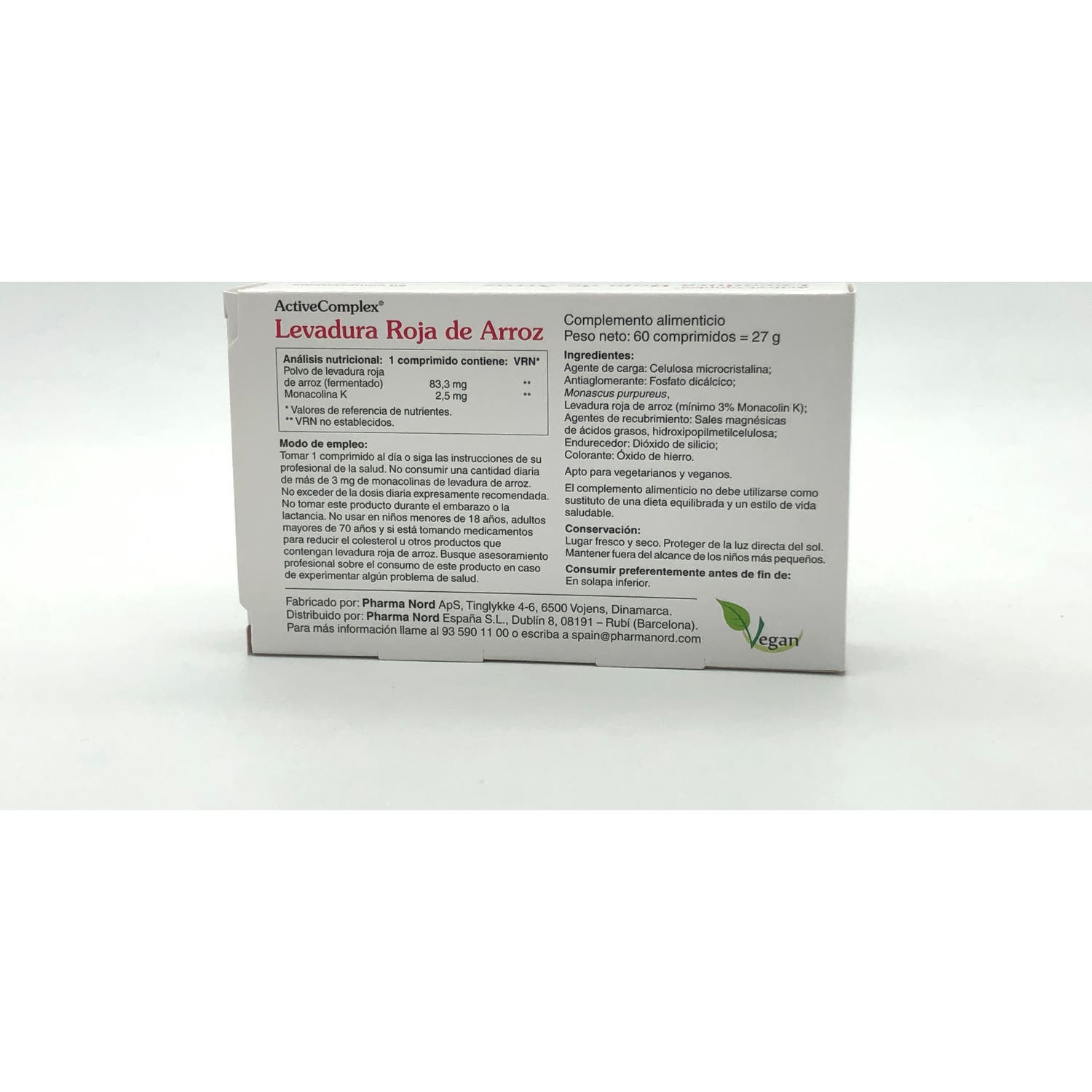 Complemento alimenticio en comprimidos a base de polvo puro de levadura roja de arroz. La levadura roja de arroz contiene monacolina K natural, un compuesto activo que contribuye a: