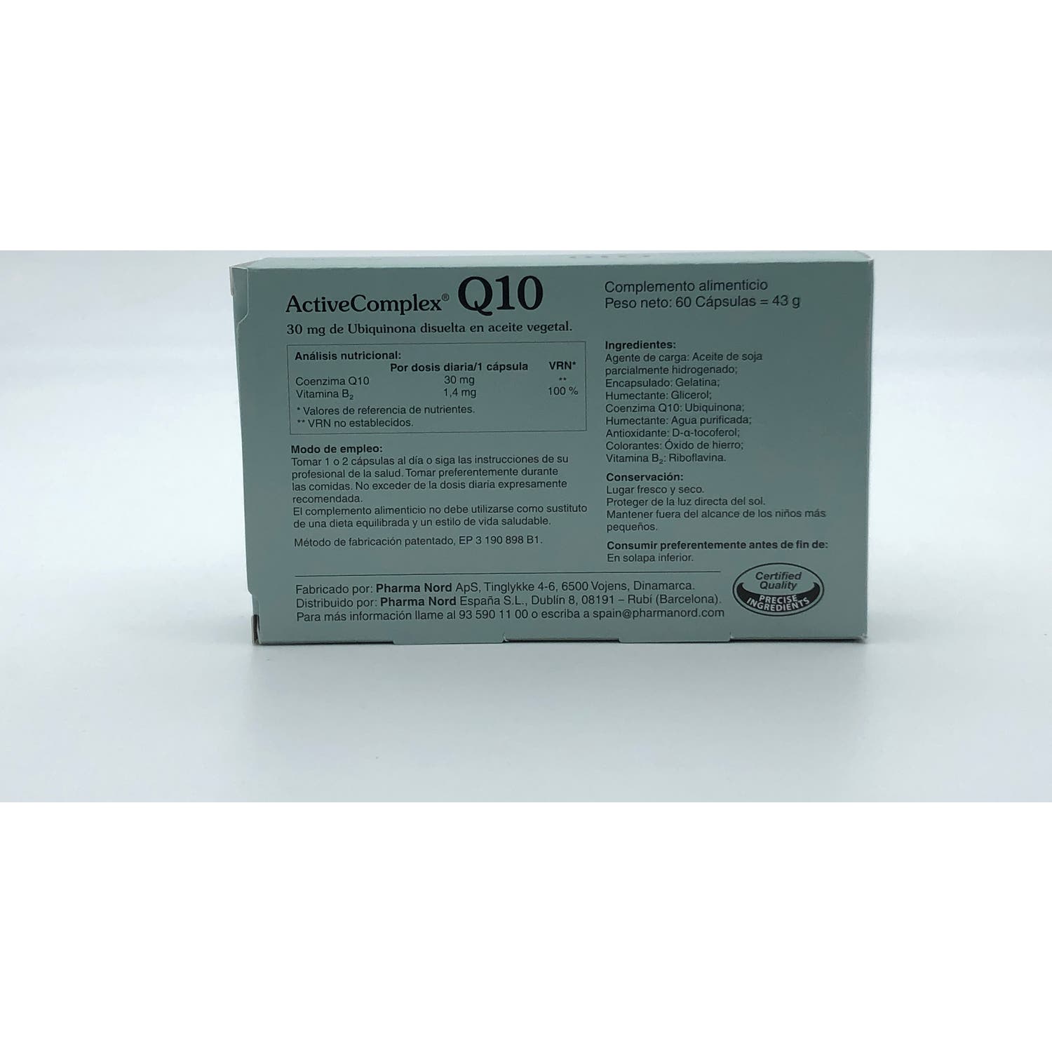 Pharma Nord ActiveComplex® Q10 60caps es un complemento alimenticio que combina coenzima Q10 y vitamina B2 para ayudar al metabolismo energético en la reducción del cansancio y la fatiga.