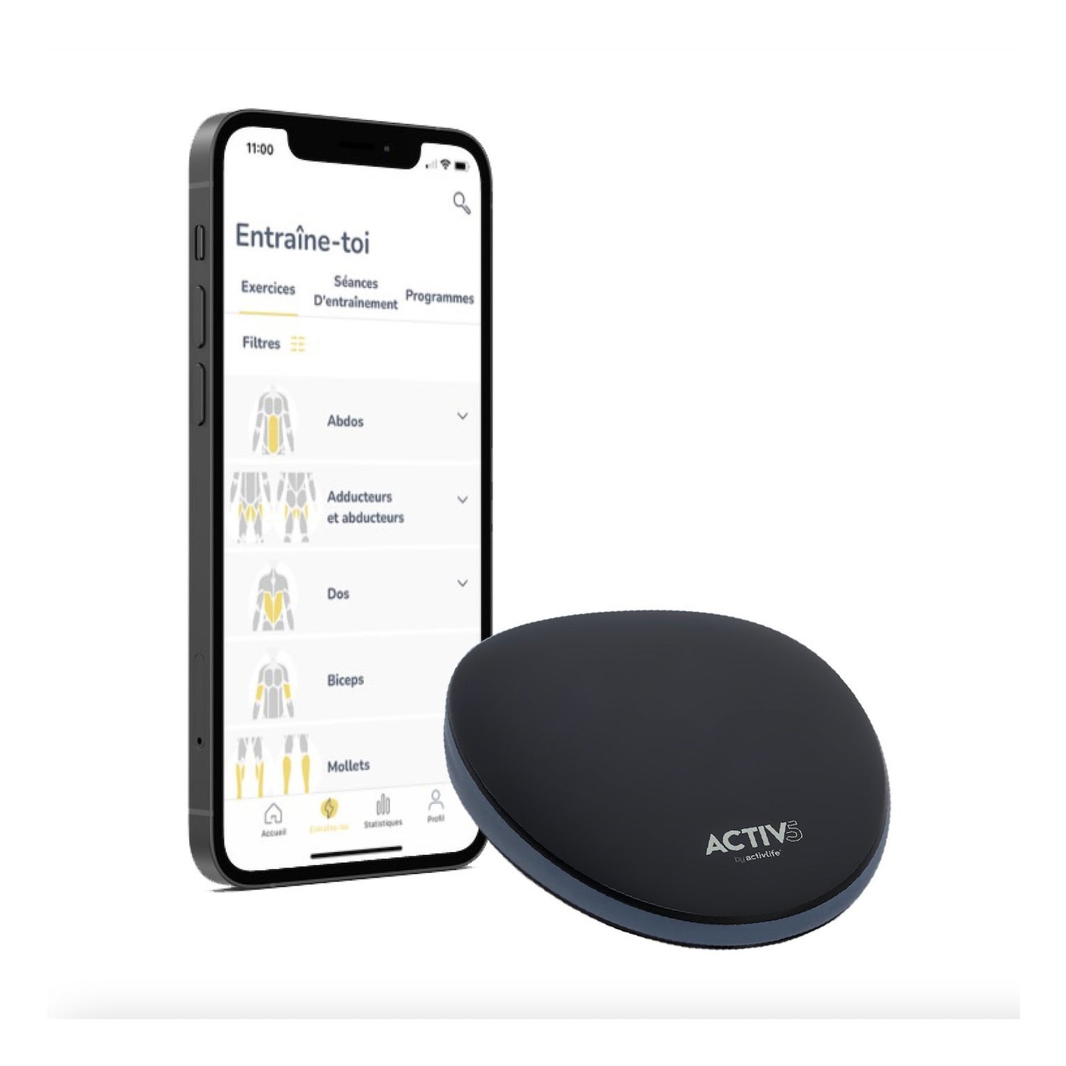 Activ5 tonifica los músculos profundos respetando las articulaciones, desarrolla la resistencia muscular y aumenta la densidad ósea. Este rodillo conectado se utiliza junto con la App Activ5 (de descarga gratuita en App Store o Google Play Store). Podrás: