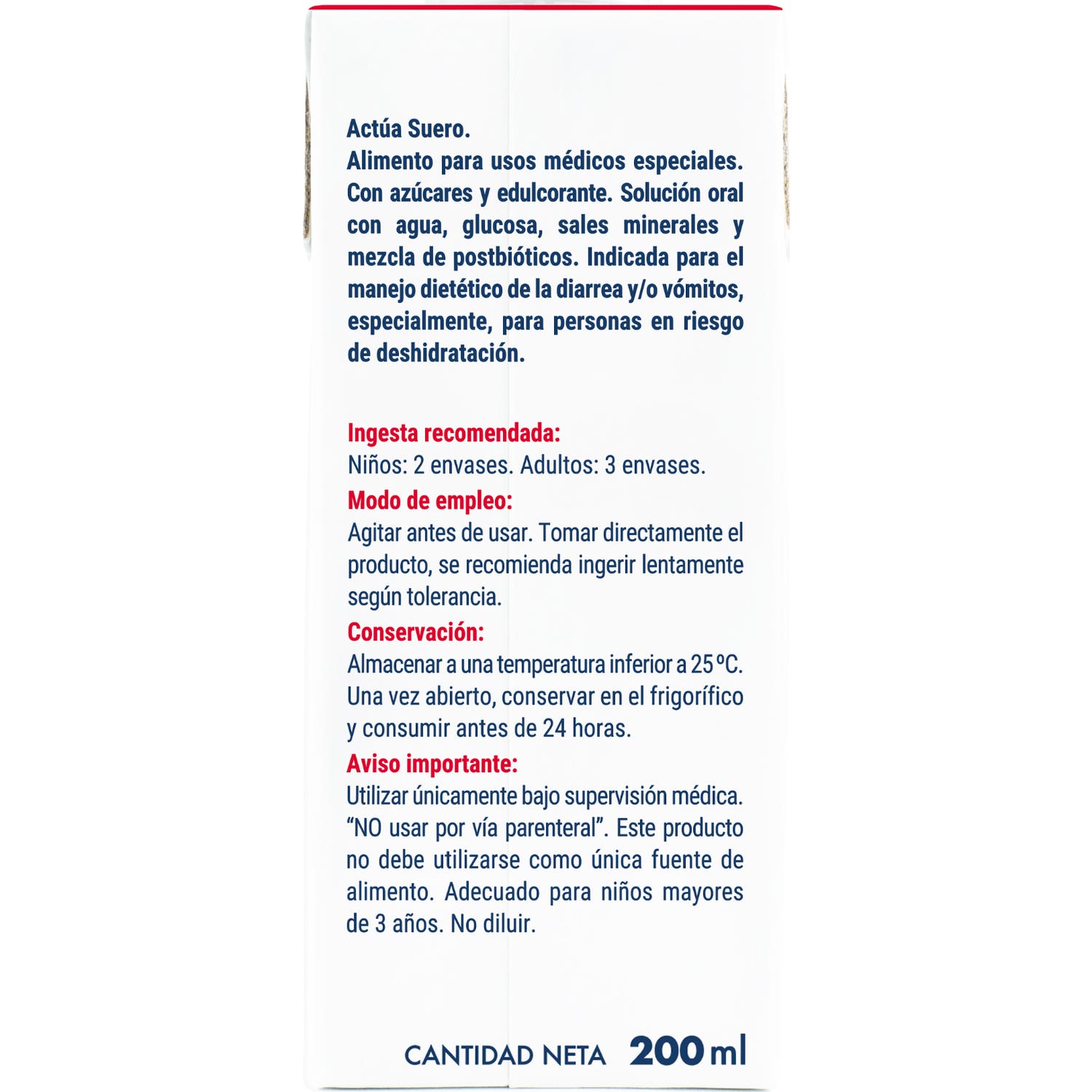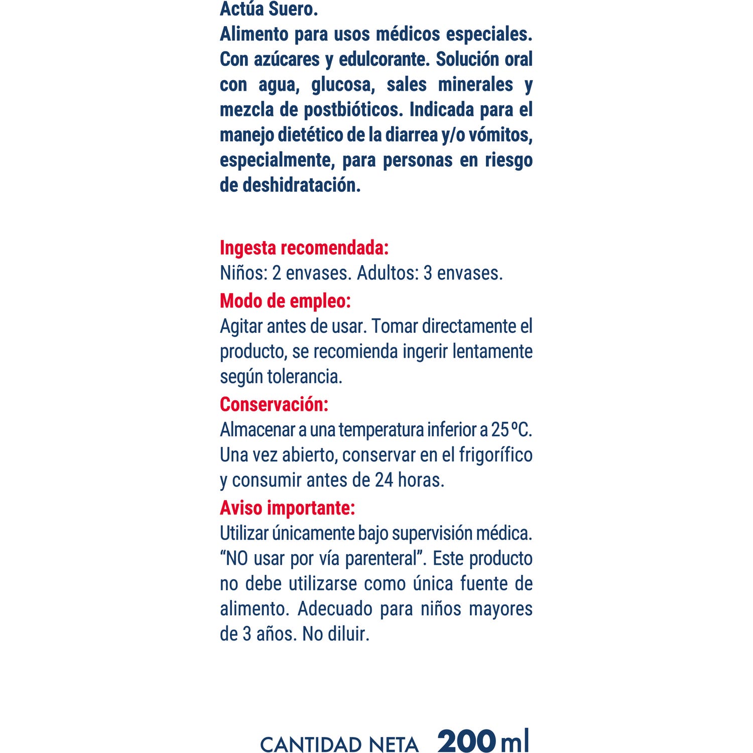 Complemento alimenticio en formato líquido con un agradable sabor a fresa, apto para celíacos e intolerantes a la lactosa. Está especialmente ideado para ayudar al aporte de líquidos y sales minerales en episodios de deshidratación causada por diarrea o trastornos gastrointestinales.
