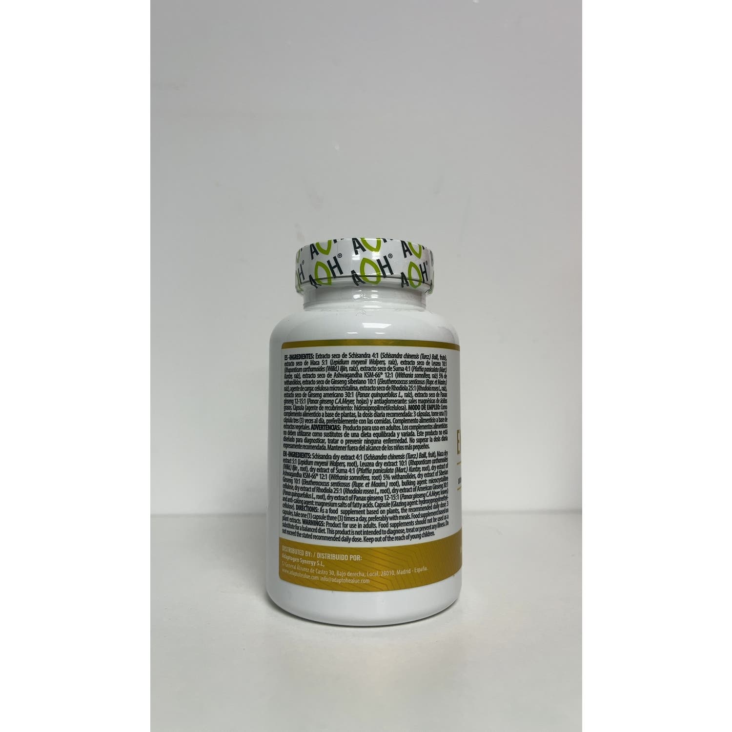 Formulado con schisandra, maca y ashwaghanda, entre otros extractos de plantas.