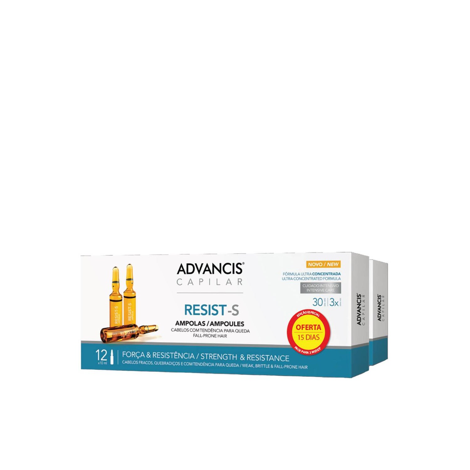 Advancis Capilar Resist-S 24x10ml es una solución dedicada al cuidado de cabellos que presentan debilidad, fragilidad y propensión a la caída. Esta fórmula especializada se presenta en ampollas, lo que facilita su aplicación y dosificación.