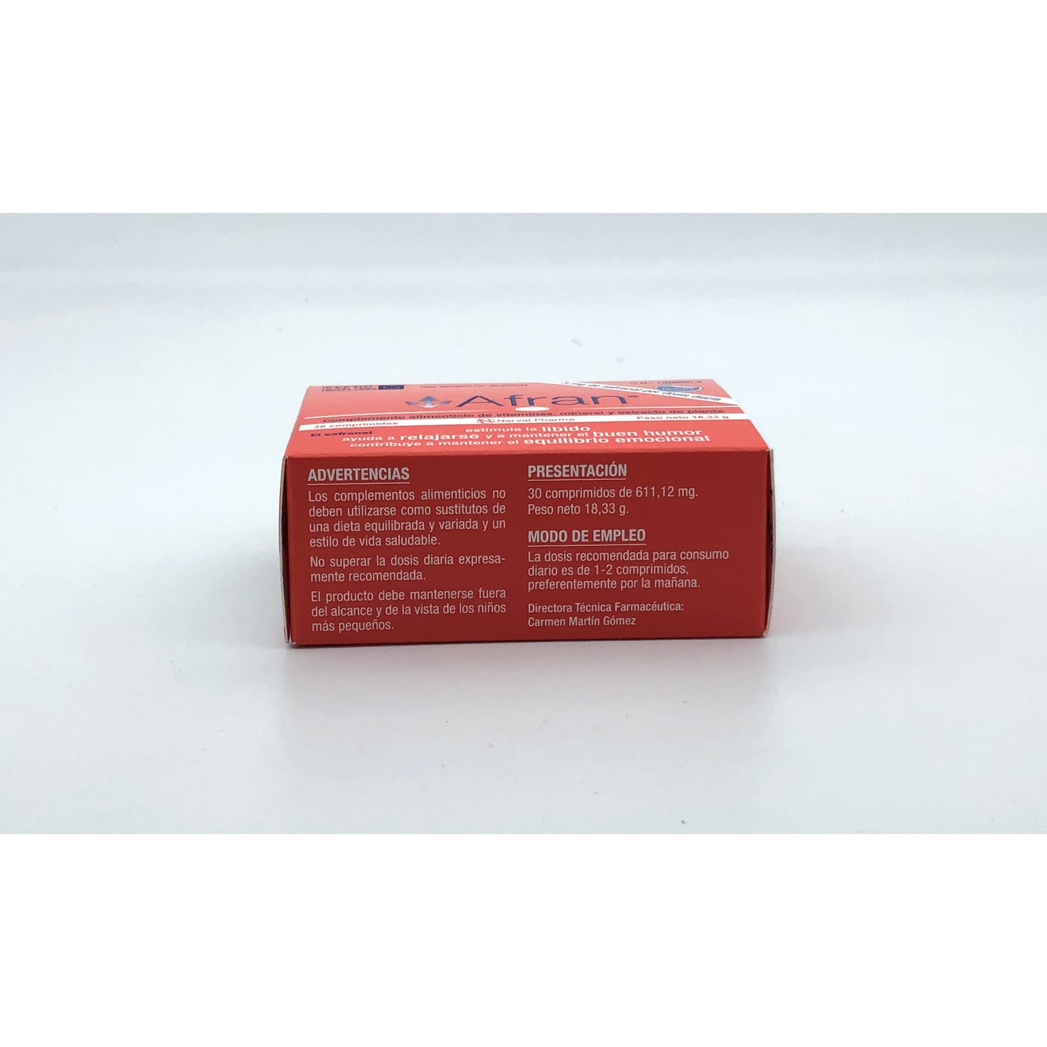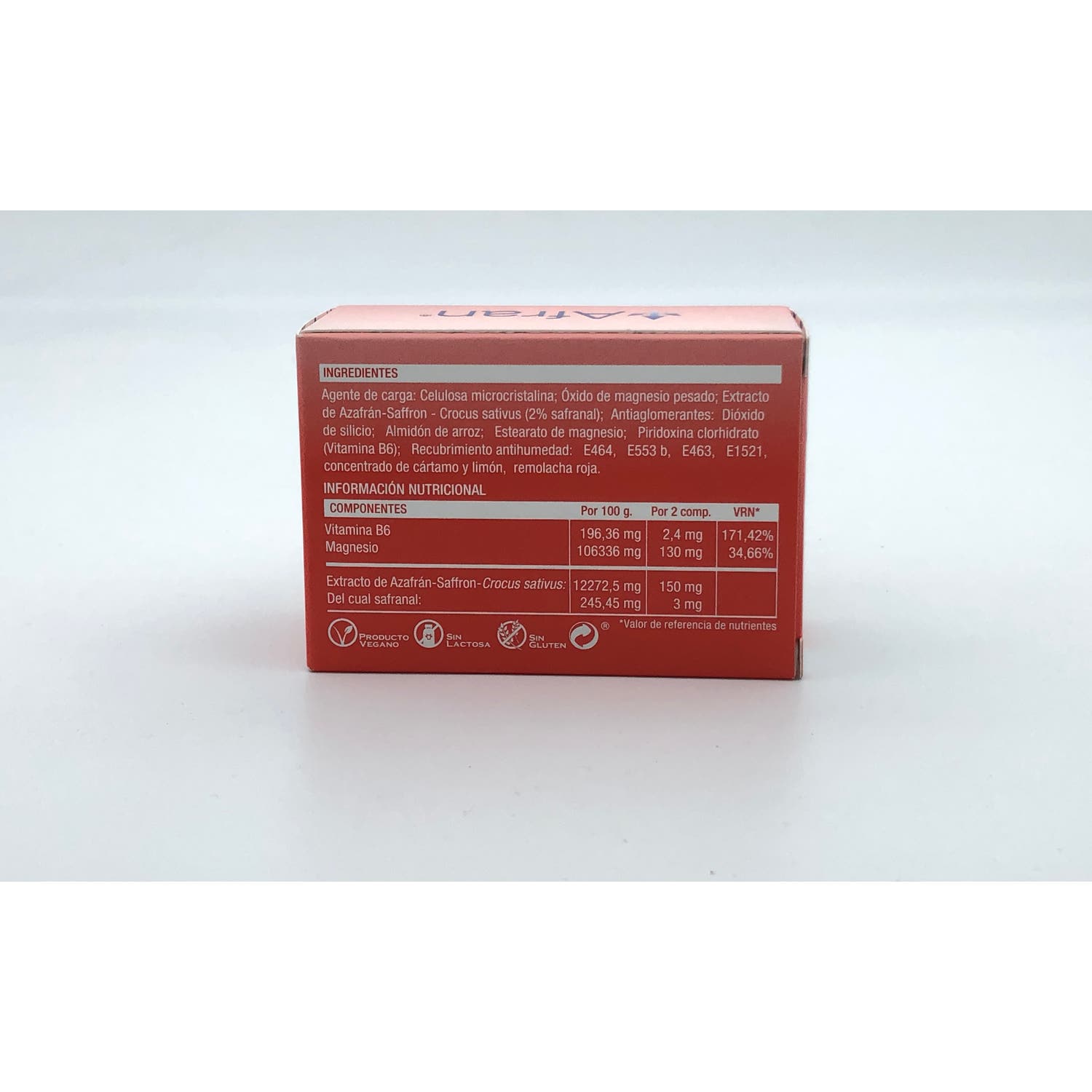 Afran 30comp es un complemento alimenticio a base de vitaminas, minerales y extractos de plantas como safranal, magnesio y vitamina B6 para asegurar unos niveles óptimos de serotonina, un neurotransmisor fundamental para el buen funcionamiento del sistema nervioso.