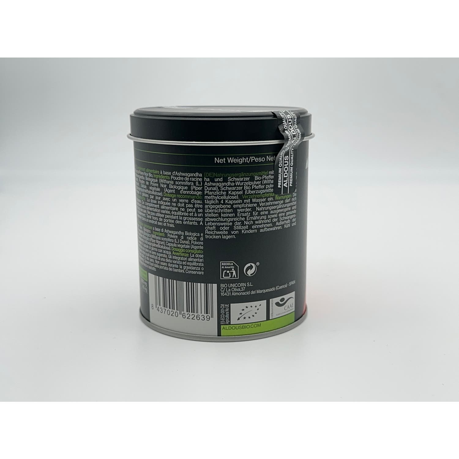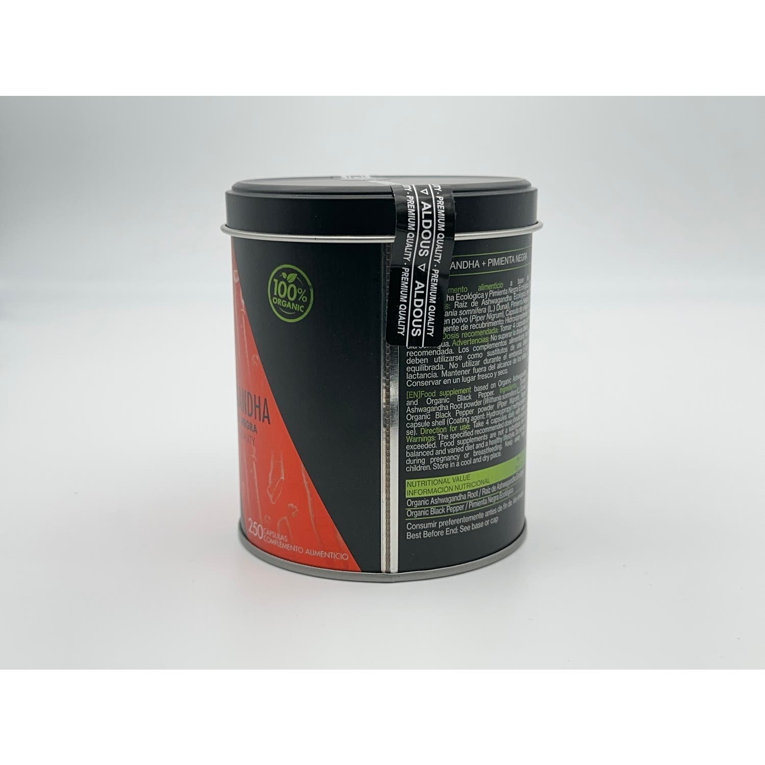 Aldous Bio Ashwagandha con Pimienta Negra Ecológica 250caps es un superalimento en cápsulas que combina Ashwagandha orgánica y Pimienta Negra. En la medicina ayurveda se considera un afrodisíaco natural tanto para hombres como para mujeres. La Ashwagandha pura es conocida por sus propiedades que promueven el bienestar físico y mental, ayudando a conciliar el sueño, evitando el insomnio y ayudando al cuerpo a adaptarse al estrés diario. También mejora el estado de ánimo al aumentar la serotonina natural. Con una dosis diaria de 2200 mg, se pueden obtener todos los beneficios de la Ashwagandha y la Pimienta Negra durante más de dos meses. Se recomienda tomar 4 cápsulas al día con abundante líquido. Los ingredientes principales son Raíz de Ashwagandha Ecológica en polvo, Pimienta Negra Ecológica en polvo y cápsulas de origen vegetal.