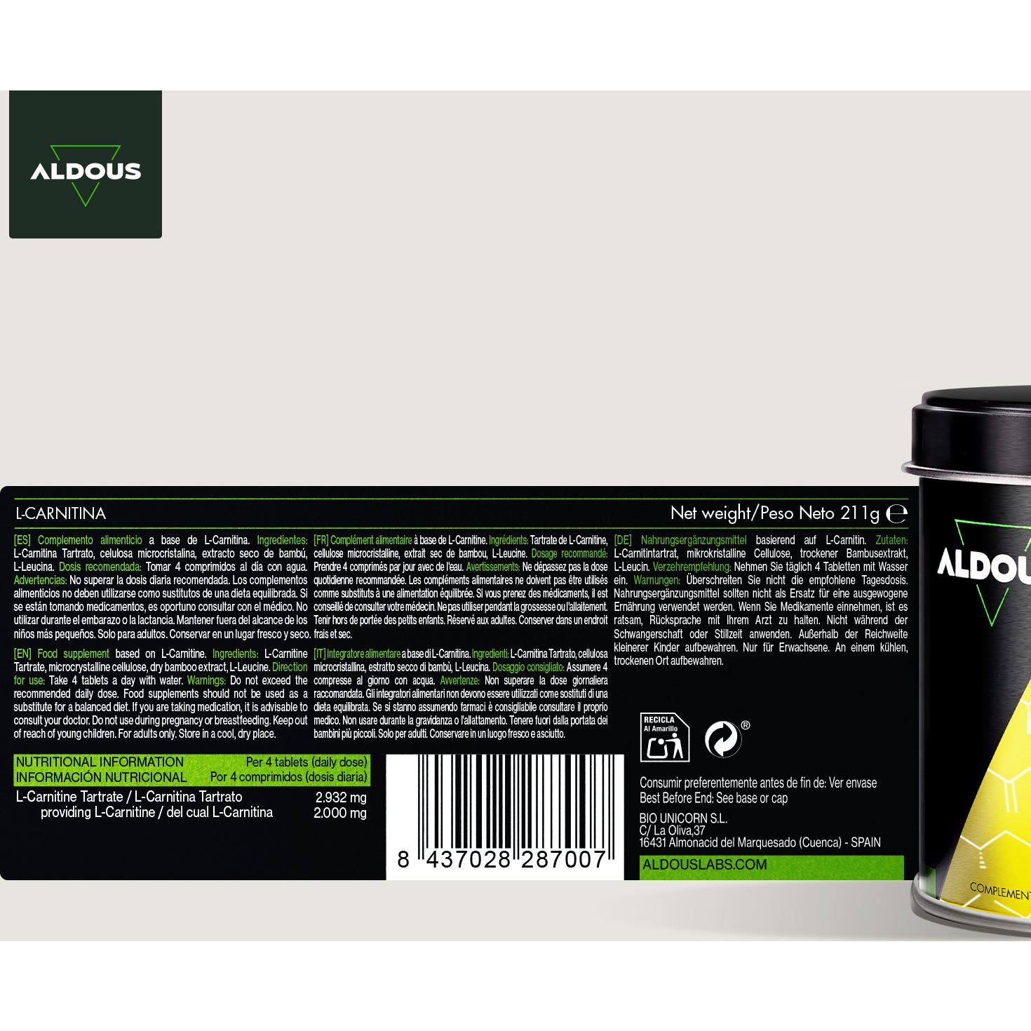 Aldous Bio L-Carnitina 2000mg se presenta en un práctico envase que contiene 200 comprimidos, lo que permite un suministro que se extiende por más de 50 días. Este producto está diseñado para mejorar el rendimiento deportivo y favorecer la quema de grasa, convirtiéndolo en una opción interesante para quienes buscan optimizar su entrenamiento.