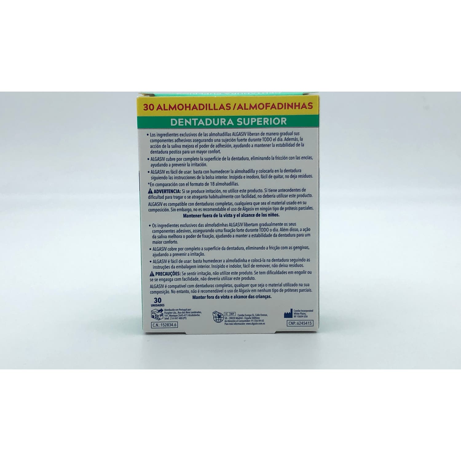 Almohadillas adhesivas para la sujeción y amortiguación de la dentadura postiza superior. Ayuda a prevenir la fricción e irritaciones en las encías, ocasionadas por el uso de prótesis dental.