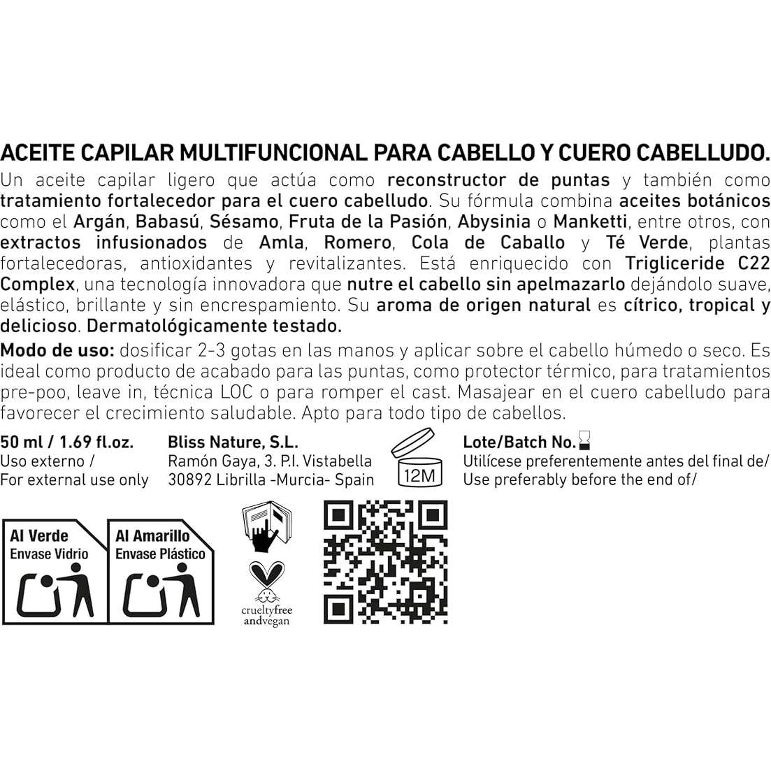 Su fórmula innovadora, que combina 12 aceites botánicos y extractos de plantas, reconstruye la fibra capilar y controla el frizz, ofreciendo una nutrición profunda.