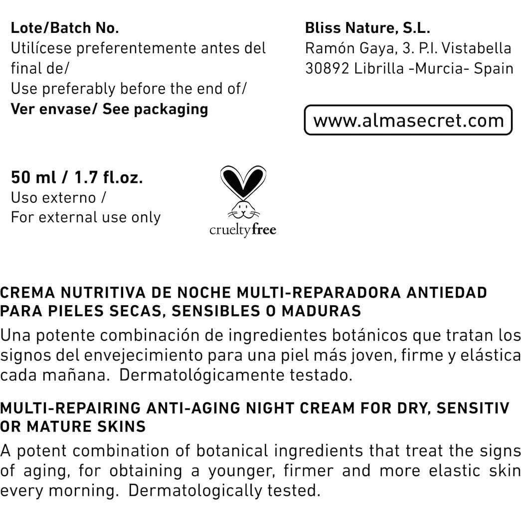 ¡Firmeza para tu piel con Alma Secret Alma Secret Multi-Reparadora Noche Mosqueta, Escualano y Hialurónico 50ml!