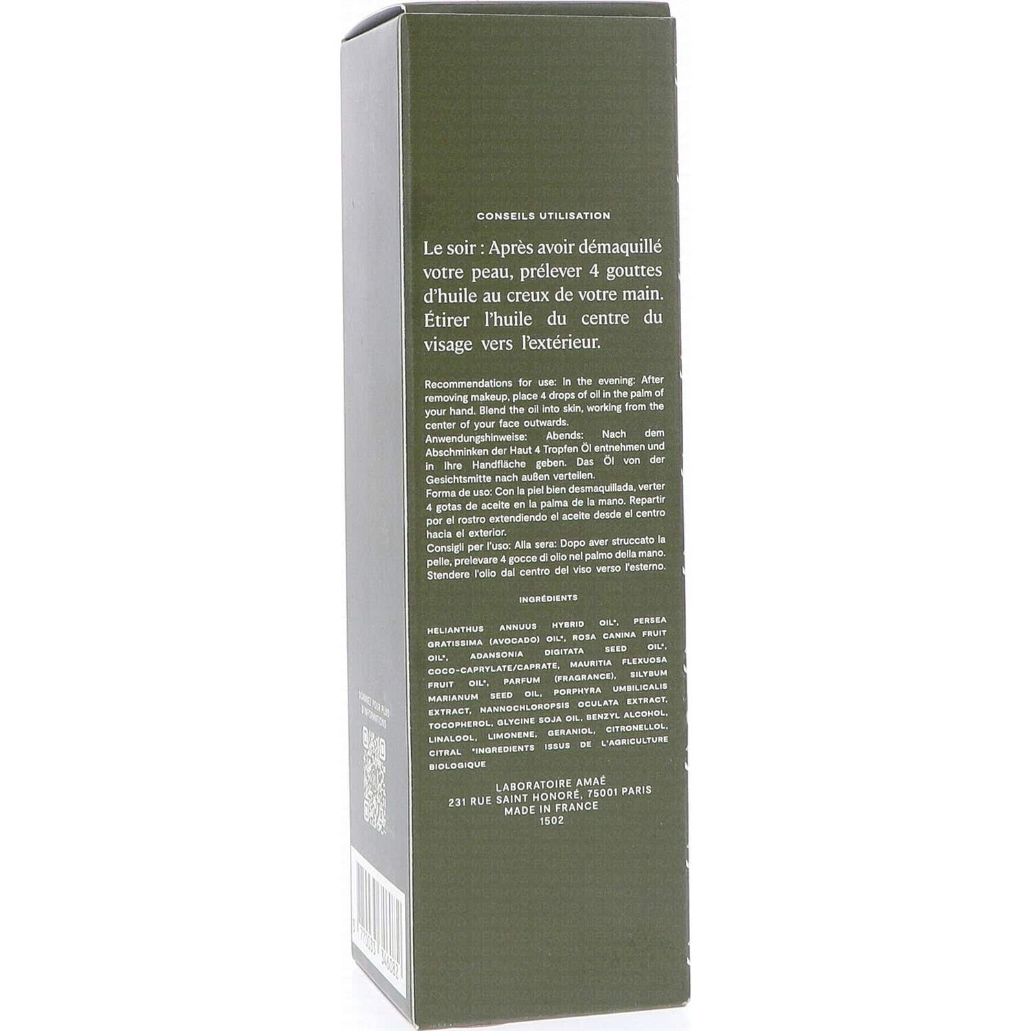 Amaé Am Aceite Divino Antiarrugas 30 ml es un aceite hidratante diseñado para combatir los signos de la edad. Su fórmula combina:
