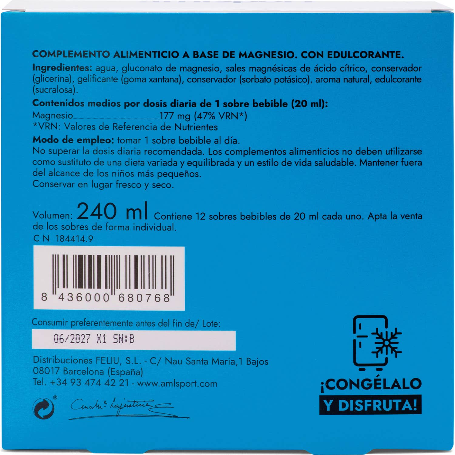 AmlSport Magnesio Total Gel Sabor Limón 12x20ml es un complemento alimenticio en formato gel bebible, de fácil absorción para el cuidado del sistema óseo.