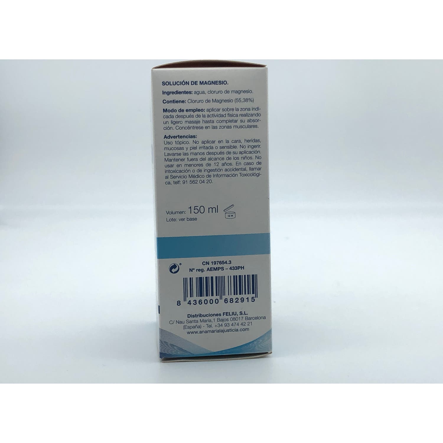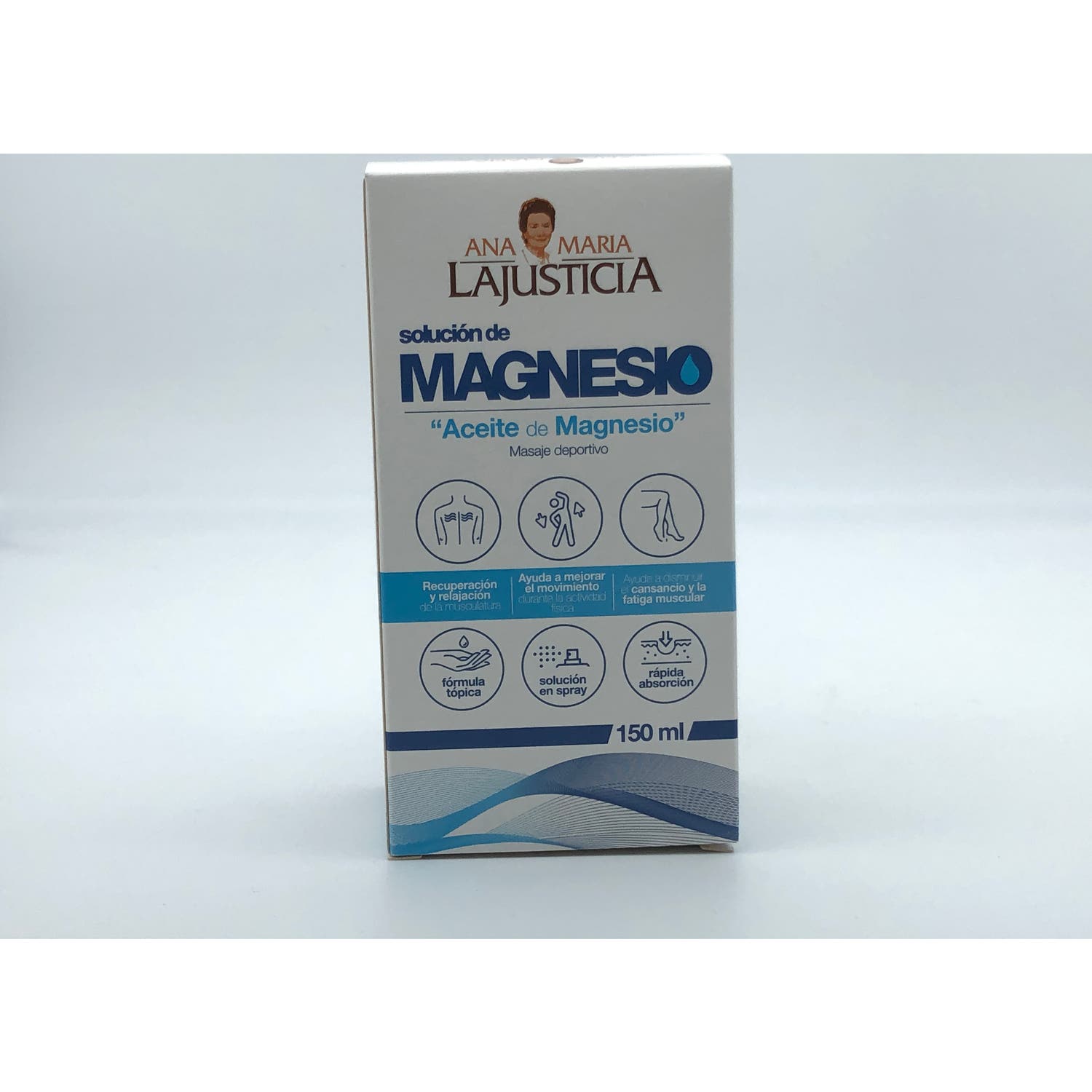 Ana Maria Lajusticia Aceite de Magnesio Masaje 150ml es un aceite de masaje para el tratamiento de dolores articulares y musculares a base de magnesio. Con acción circulatoria y vigorizante para piernas cansadas. Formato en spray de fácil aplicación y rápida absorción en la piel.
