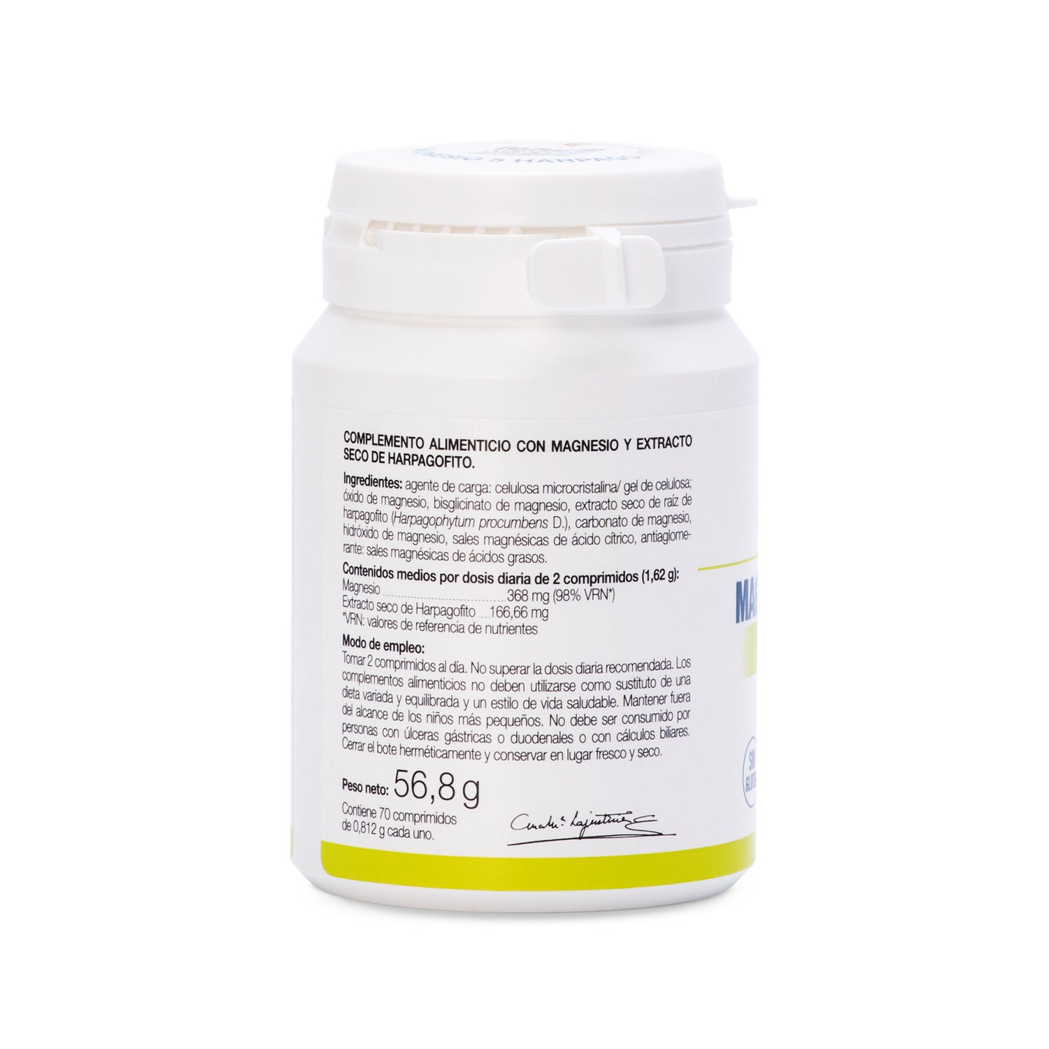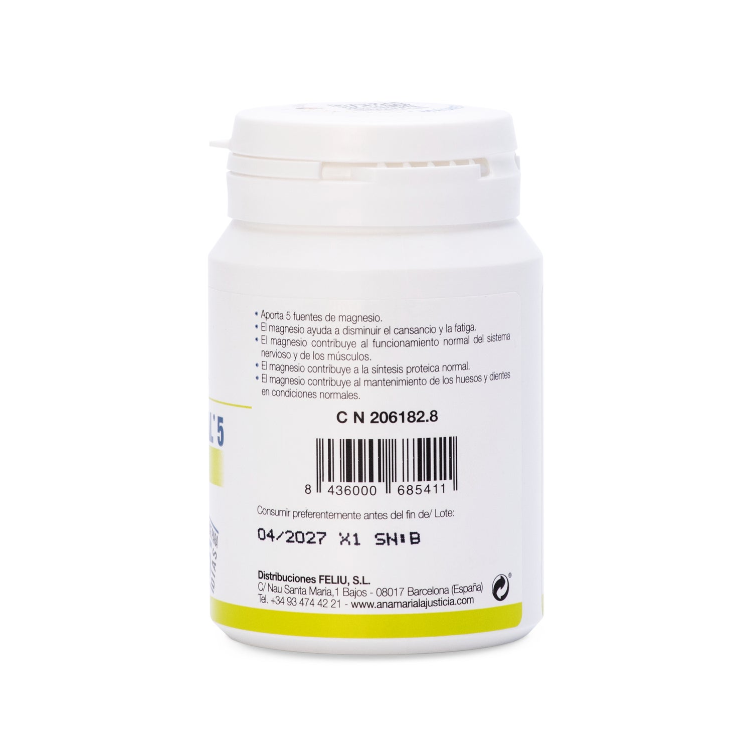 Ana Maria Lajusticia Magnesio Total 5 con Harpago 70comp es un complemento alimenticio elaborado con extracto seco de harpagofito y 5 fuentes de magnesio. Contribuye a mantener la salud del sistema locomotor y preservar la movilidad. Favorece la disminución de la fatiga física y mental.