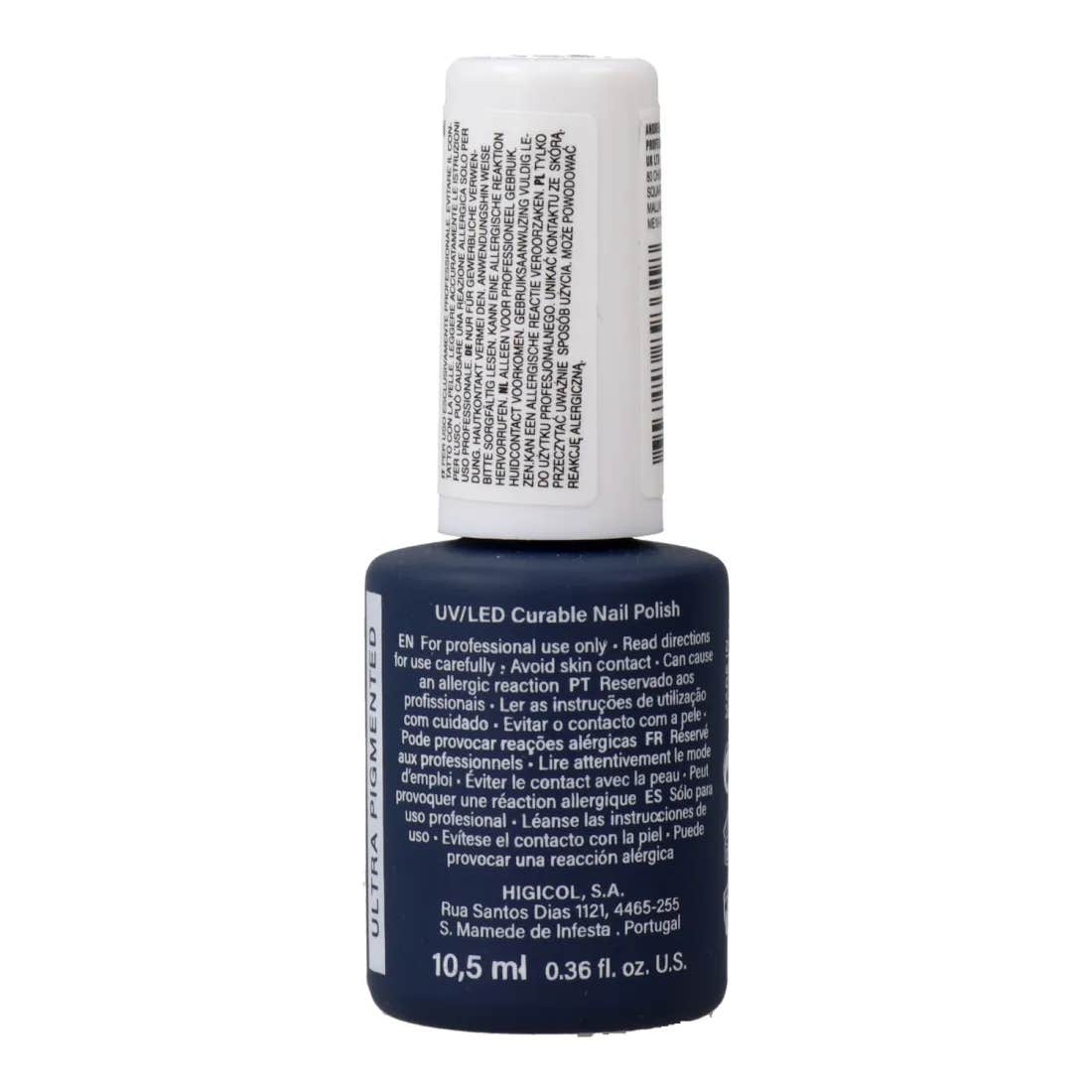 El frasco, en un elegante tono azul noche con un acabado aterciopelado, añade un toque estético que hace que el proceso de trabajo sea aún más placentero. Además, ofrece una durabilidad notable, ya que las uñas tratadas con este esmalte se mantienen impecables durante un periodo de hasta 4 semanas.