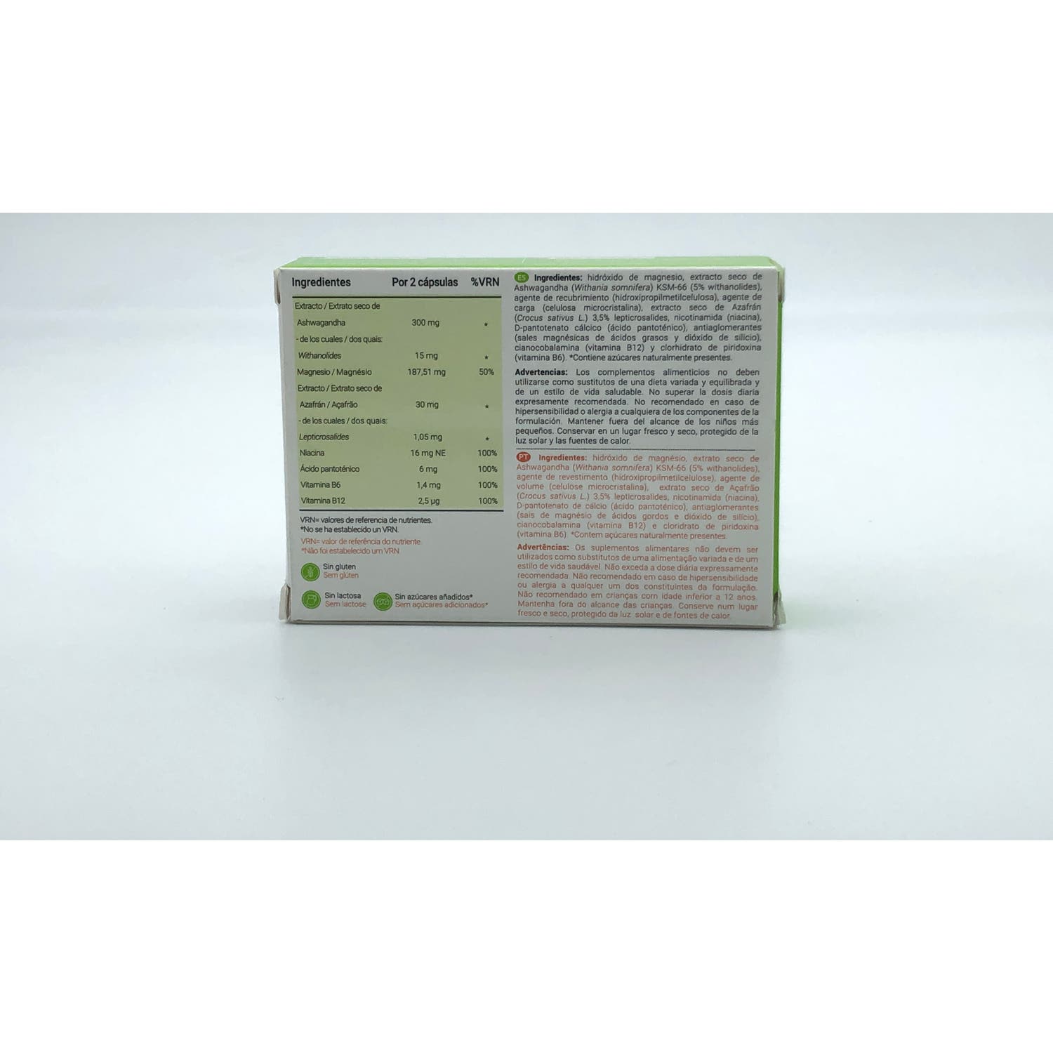 Extracto seco de azafrán, extracto seco de Griffonia, Baill, magnesio, niacina, ácido pantoténico, vitamina B12 y vitamina B6.