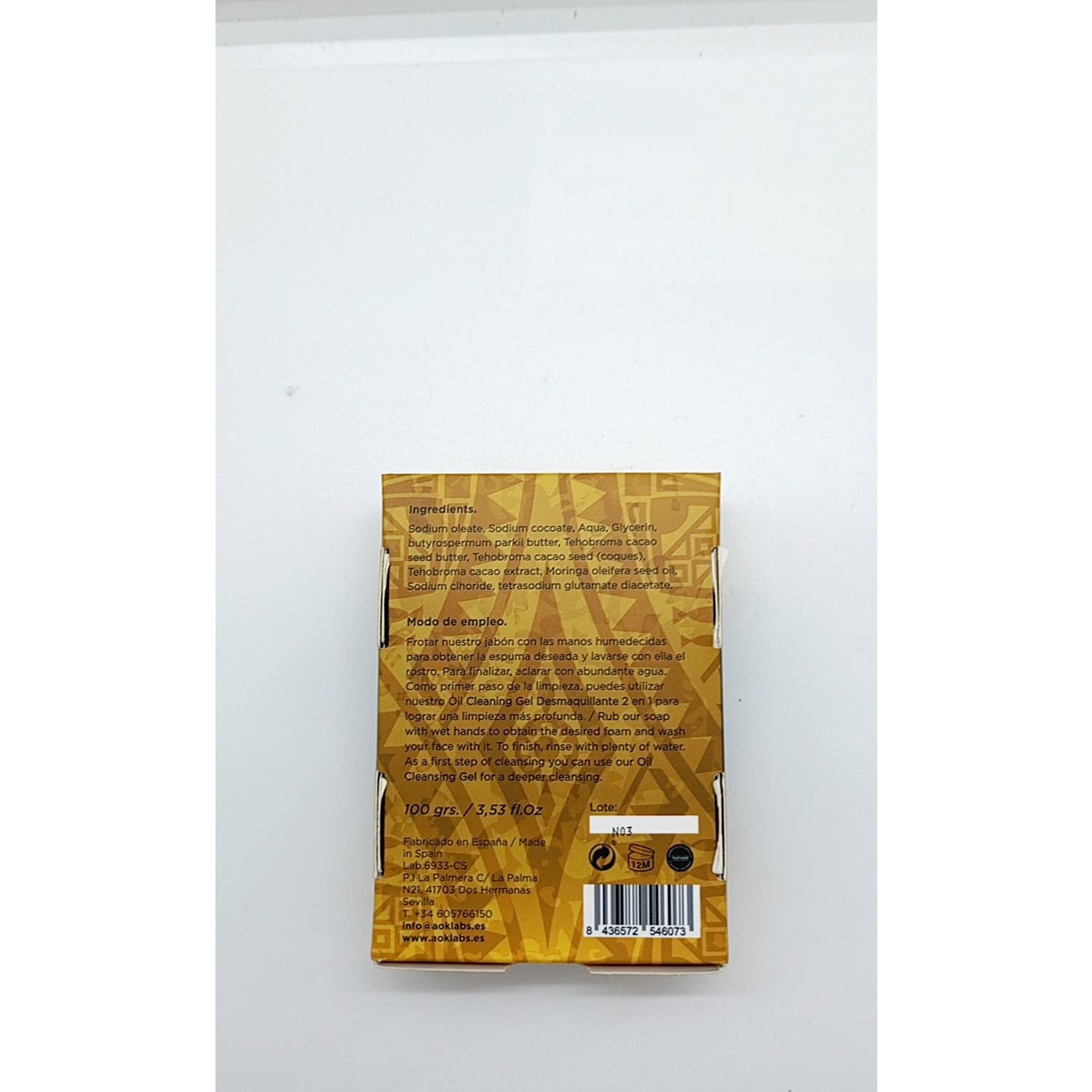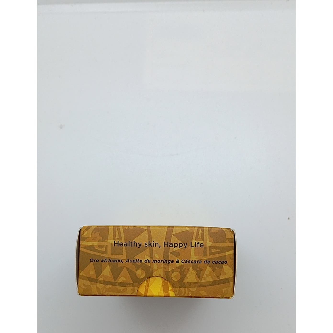 Jabón que ayuda a obtener una sensación de suavidad en la piel. Su ingrediente principal es el cacao, también contiene un extra de oro africano, aceites de coco, moringa y oliva para ayudar a brindar a la piel limpieza, hidratación y suavidad. También contribuye a eliminar manchas y arrugas y el sebo en pieles acnéicas.