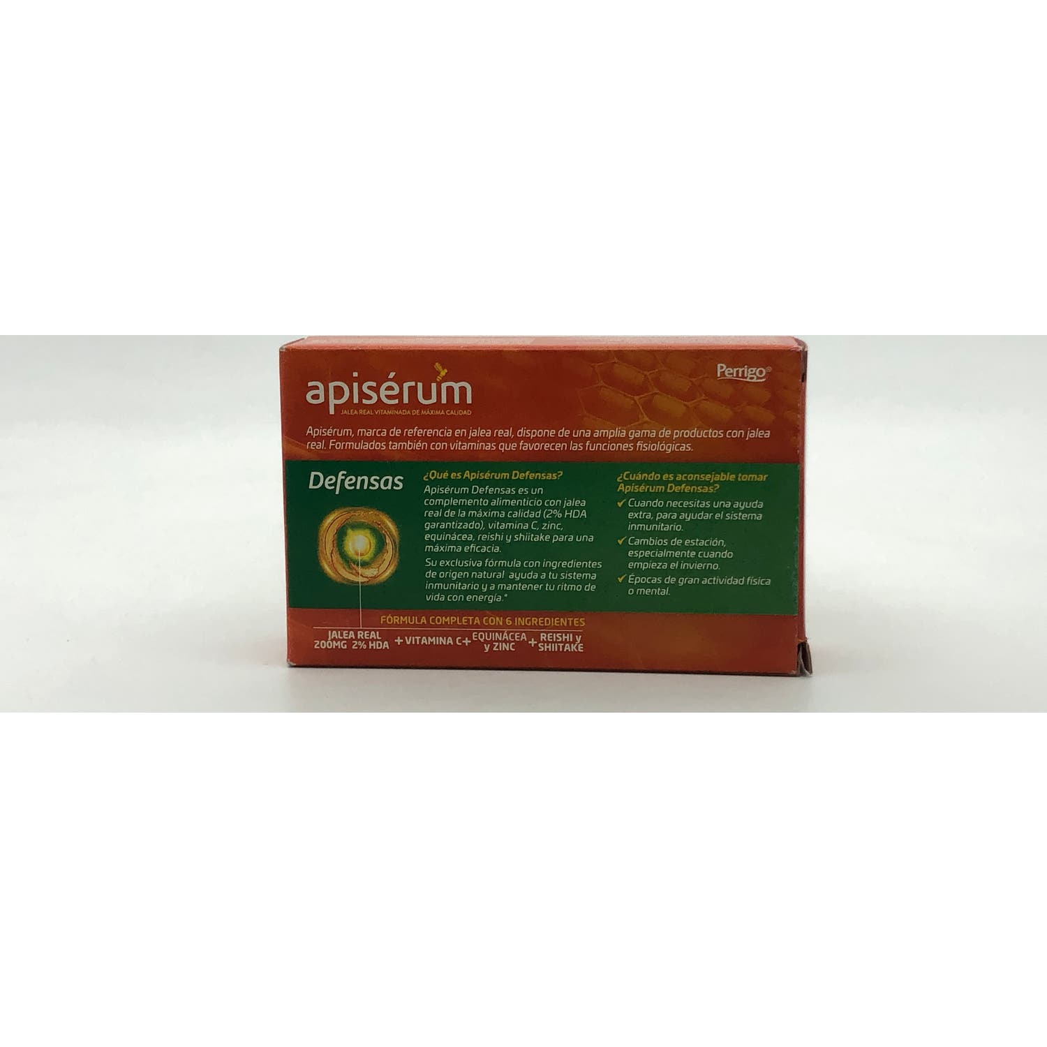Apisérum Defensas 30caps es un complemento alimenticio con Jalea Real de alta calidad (2% HDA garantizado), vitamina C, Zinc, Equinácea, Reishi y Shiitake para mejorar su eficacia. Su fórmula elaborada exclusivamente con ingredientes de origen natural, favorece al sistema inmunitario y a mantener la energía a diario.