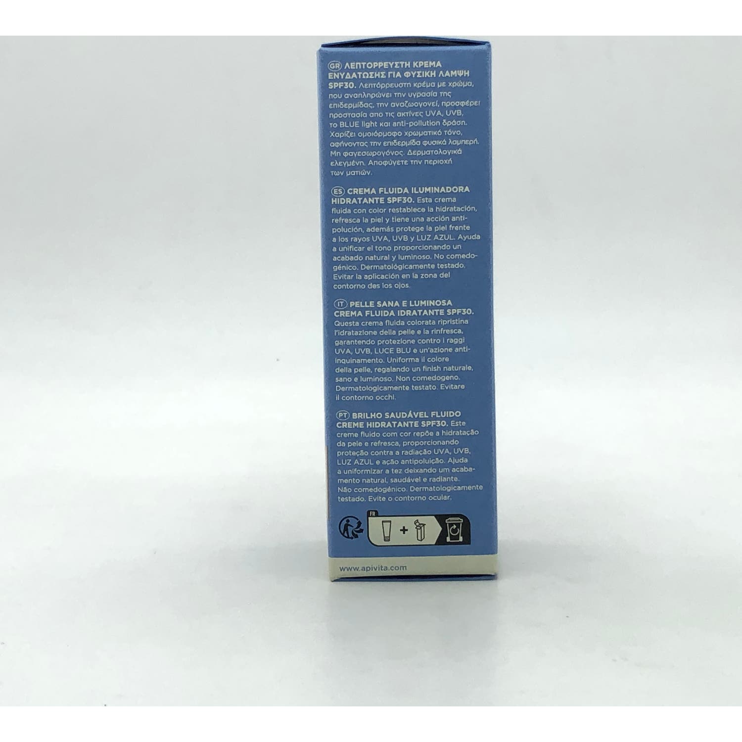 Apivita Aqua Beelicious Crema Fluida Iluminadora Hidratante SPF30 Color 40ml es una crema que ayuda a hidratar la piel y a ofrecer una protección ante los rayos UVA, UVB y la luz azul.