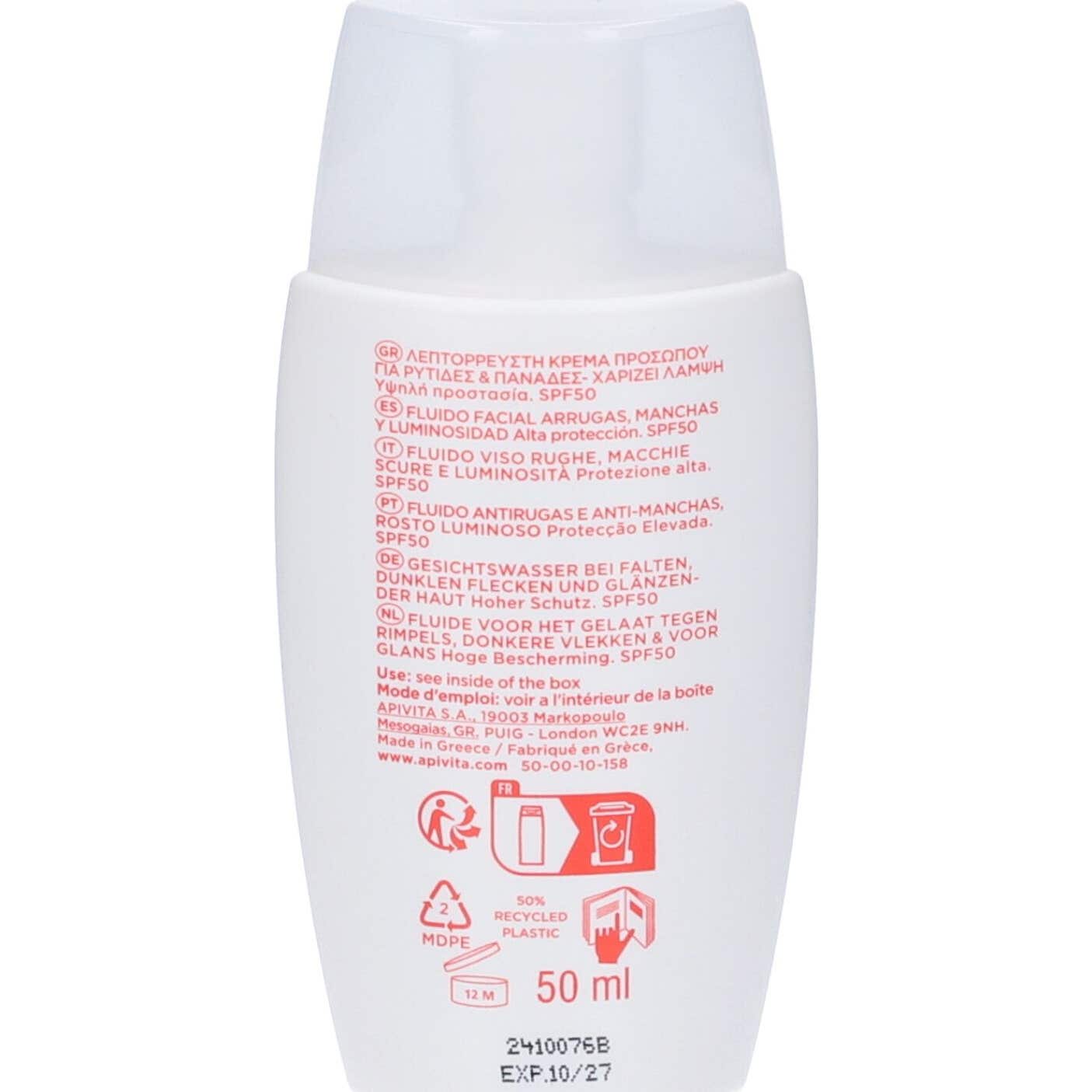 Apivita Bee Sun Safe Daily Age Repair Spf50 50ml es un fluido facial diario diseñado para ofrecer protección solar avanzada y un cuidado antiedad global.