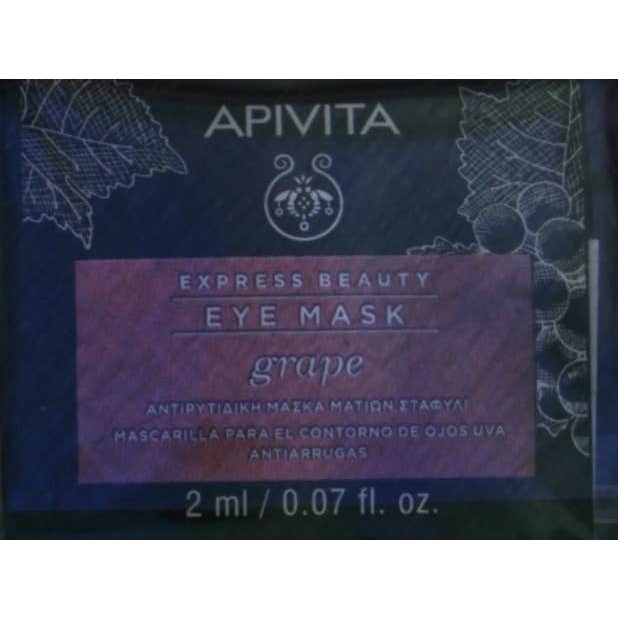 Apivita Express Beauty mascarilla antiarrugas ojos uva ayuda a reafirmar la piel en el contorno de los ojos. La combinación de uva y vitamina A y E, ayudan a prevenir la aparición de arrugas a la vez que revitalizan la piel y aportan suavidad.