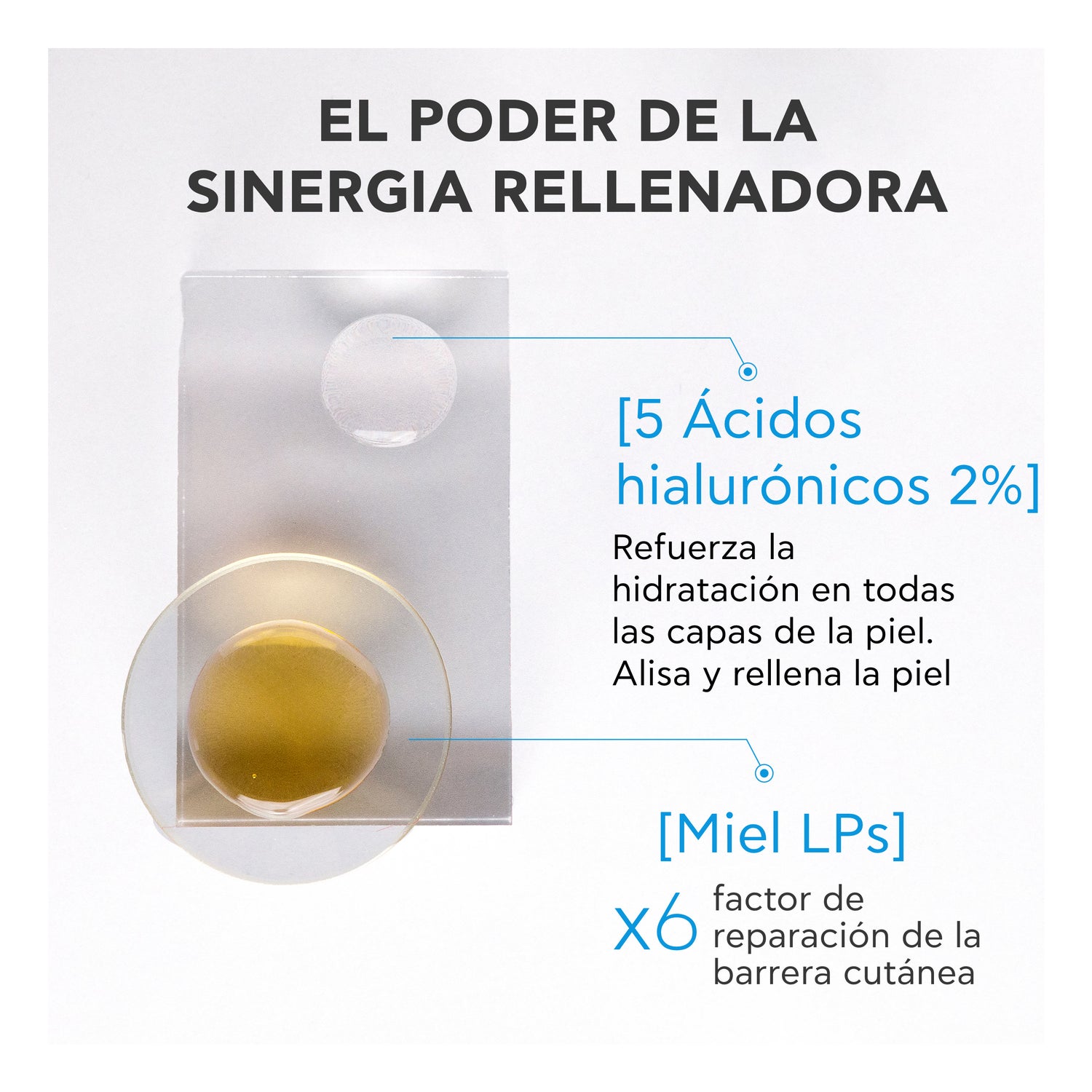 Su eficacia ha sido probada en potenciar 6 veces la producción del factor reparador de la barrera1, para conseguir una piel equilibrada, suave y rellena.Su textura gel-sérum rellena, ofrece volumen y un aspecto suave a la piel.1 Estudios in vitro en fibroblastos