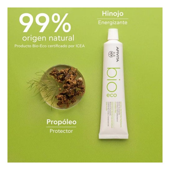 Pasta de dientes con un 98% de ingredientes de procedencia natural, entre los que cabe destacar el própolis, la granada y la caléndula, además contiene fluoruro al 500ppm, calcio glicerofosfato y xilitol, todos ellos para ayudar a combatir la caries, prevenir la gingivitis y evitar la acumulación de sarro, cuidando las encías y los dientes, mejorando el aliento y dejando una sensación de frescor muy agradable en la boca. Su composición es compatible con la homeopatía.