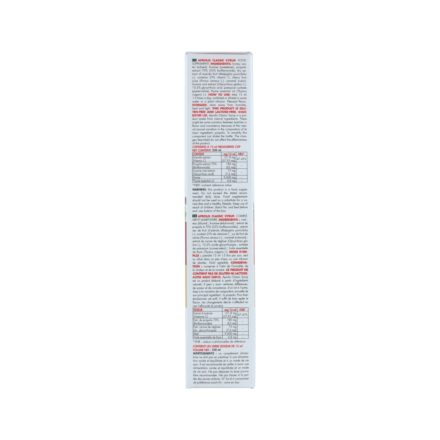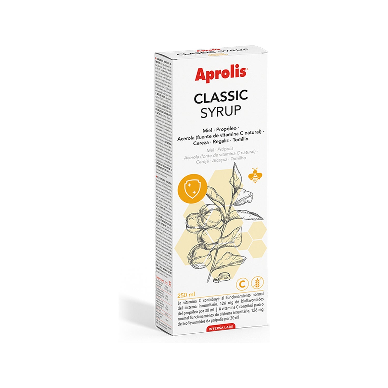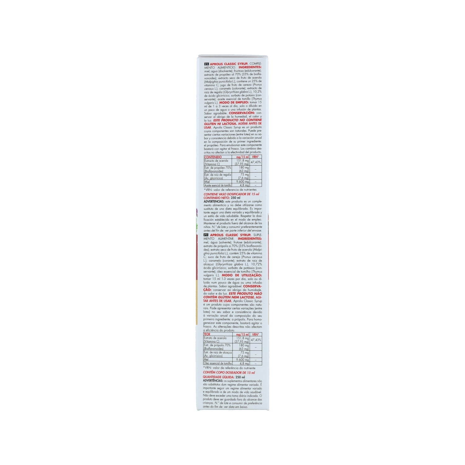 Aprolis Jarabe 250ml es un complemento alimenticio a base de miel, propólis, acerola y extractos de plantas indicado en casos de infecciones, catarros, gripes, tos, expectoraciones, sinusitis, otitis, faringitis, amigdalitis, laringitis o afonía, enfisema pulmonar, bronquitis agudas y crónicas, asma bronquial. Asimismo, ayuda a combatir el resfriado, alergias estacionales y perennes.