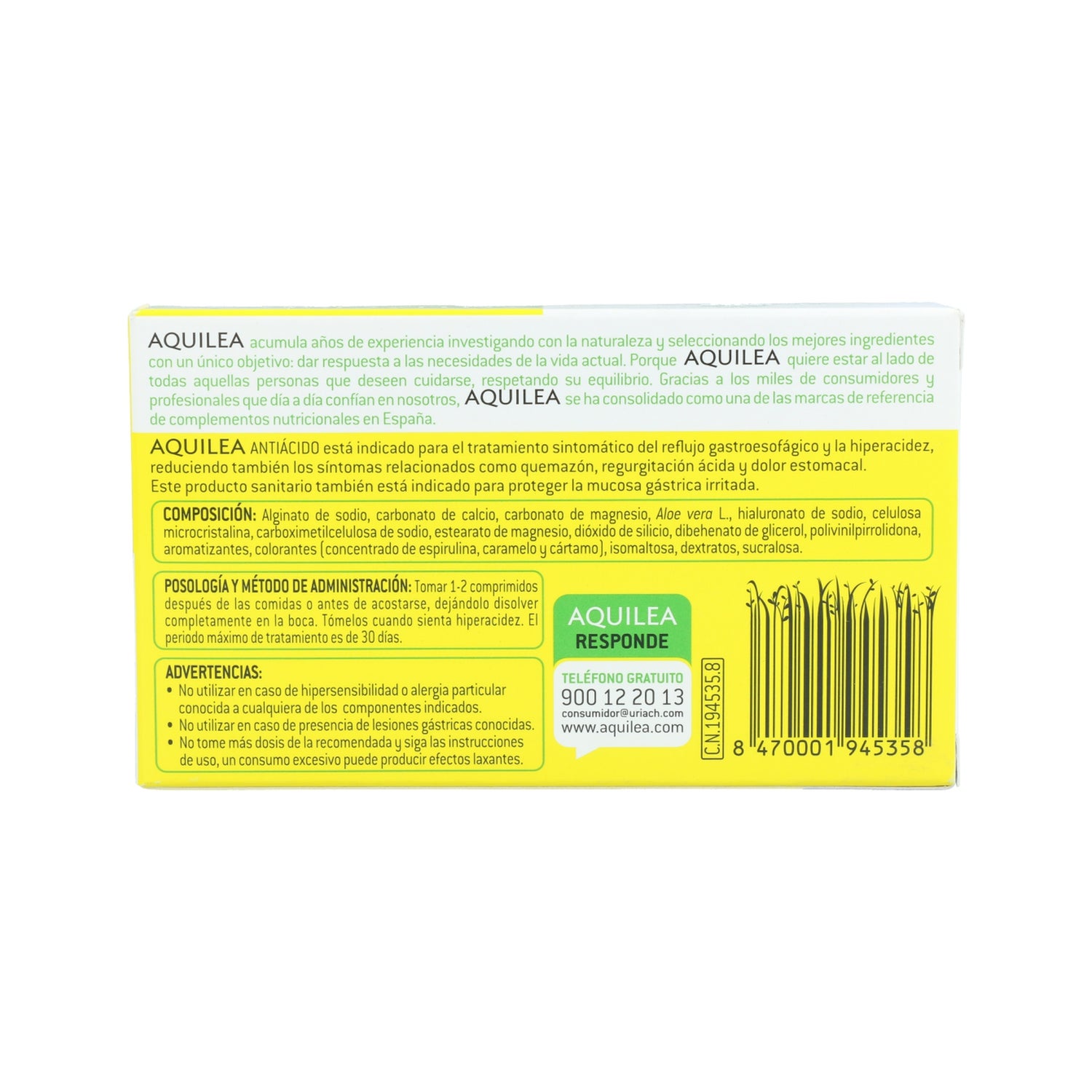 Aquilea Antiácido 24comp es un complemento alimenticio que ayuda a controlar el reflujo gastroesofágico y la hiperacidez, reduciendo los síntomas relacionados como la quemazón, la regurgitación ácida y el dolor estomacal.