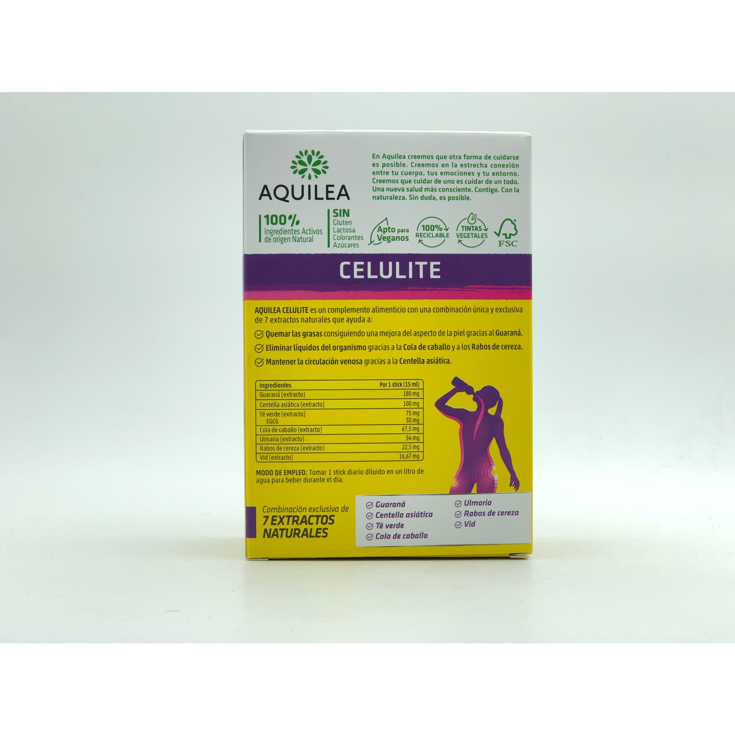 Aquilea Celulite 15 sticks es un complemento que ayuda a mejorar la circulación y a disminuir la retención de líquidos y la celulitis.