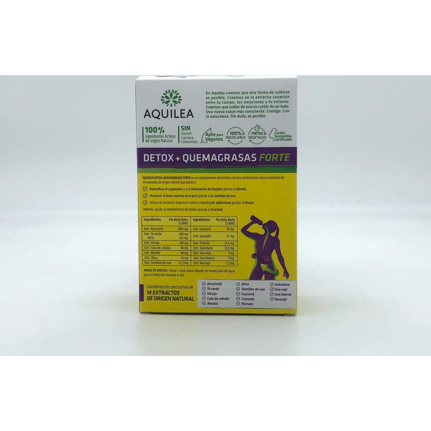 Aquilea Detox+Quemagrasas 10 sticks es un complemento alimenticio que contribuye a neutralizar las grasas de los alimentos, ayuda a disminuir y a controlar la retención de líquidos.
