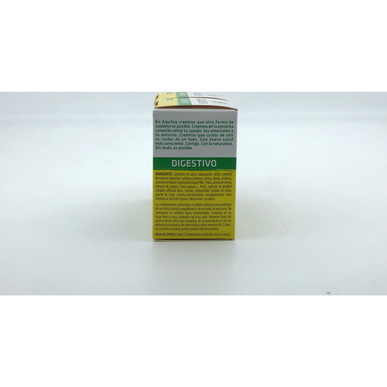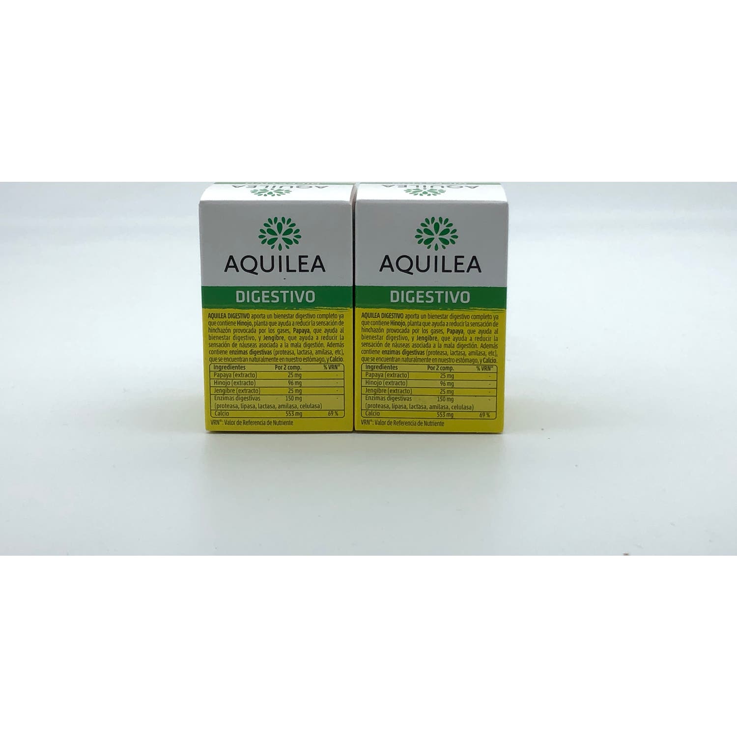 Calcio 539mg, enzimas digestivas 75mg, Hinojo 96mg, Papaya 25mg.