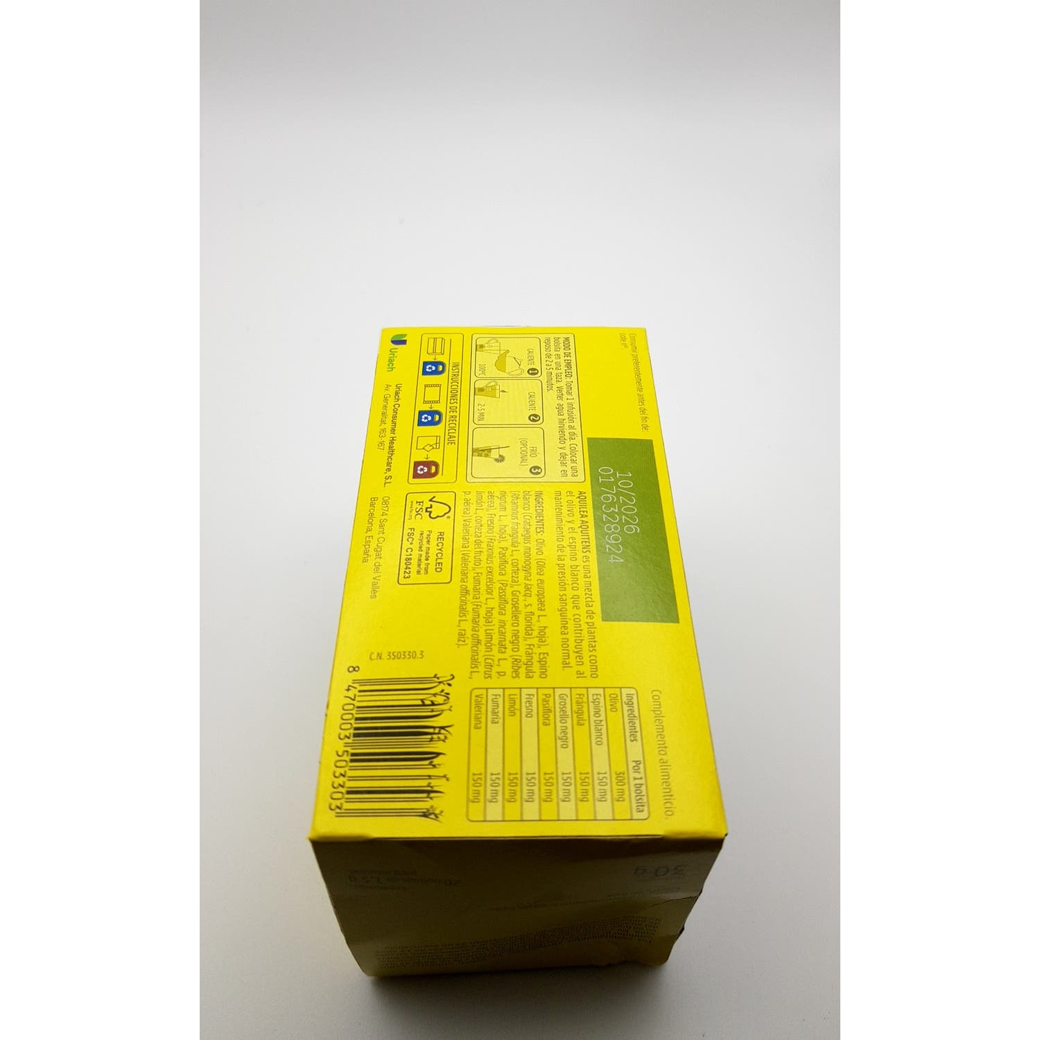 OLIVO (OLEA EUROPEA L.,HOJA) 20%, ESPINO BLANCO (CRATAEGUS MONOGYNA JACQ., S.FLORIDA) 10%, FRÁNGULA (RHAMNUS FRANGULA L., CORTEZA) 10%, CASIS (RIBES NIGRUM L., HOJA) 10%, PASIONARIA (PASSIFLORA INCARNATA L., P.AÉREA) 10%, FRESNO (FRAXINUS EXCELSIOR L., HOJA) 10%, LIMÓN (CITRUS LIMON L., CORTEZA) 10%, FUMARIA (FUMARIA OFFICINALIS L., P.AÉREA) 10%, VALERIANA (VALERIANA OFFICINALIS L., RAÍZ ) 10%.