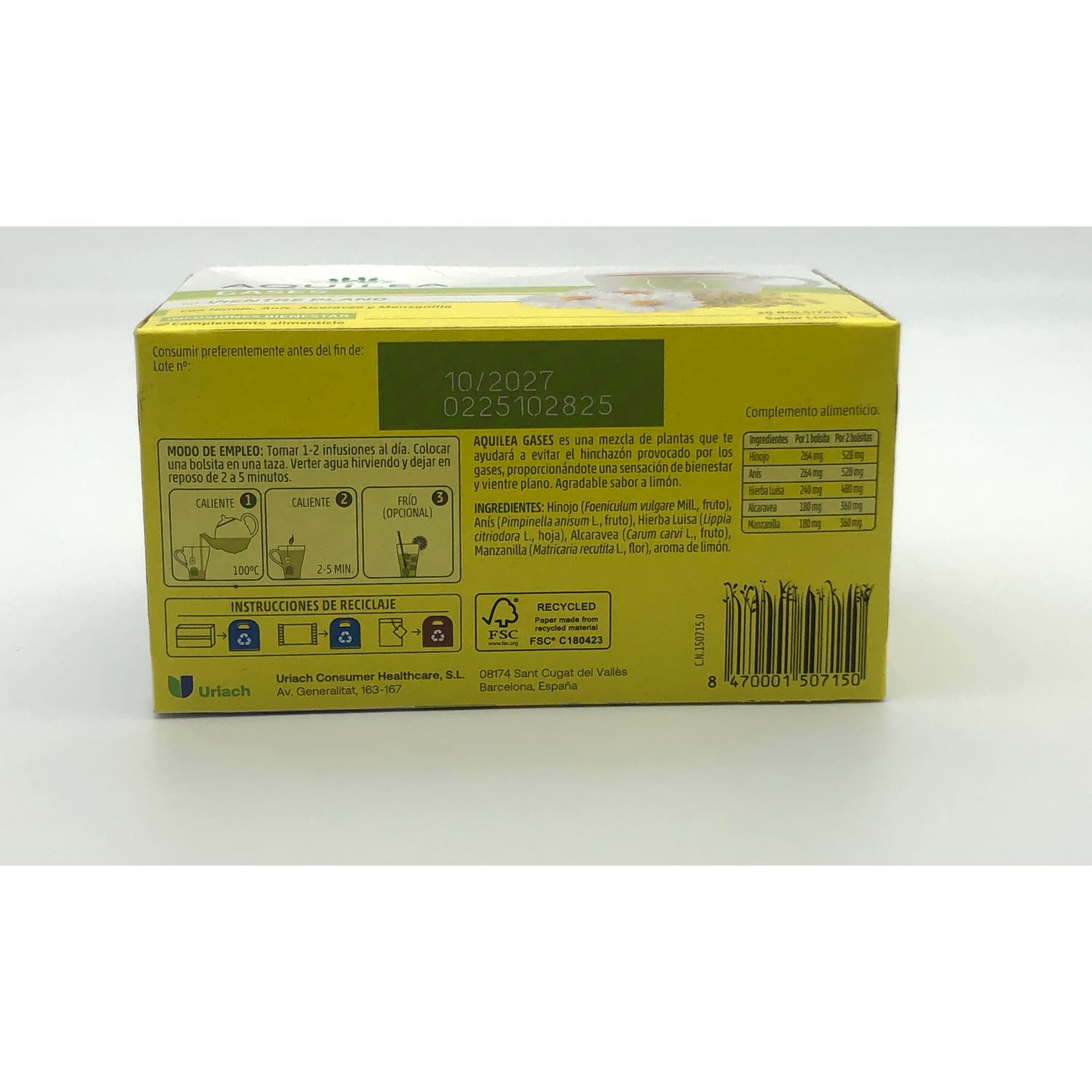 Aquilea Infusiones Gases 20 bolsitas es una infusión que ayuda a mejorar las molestias que ocasionan los gases y las comidas copiosas.