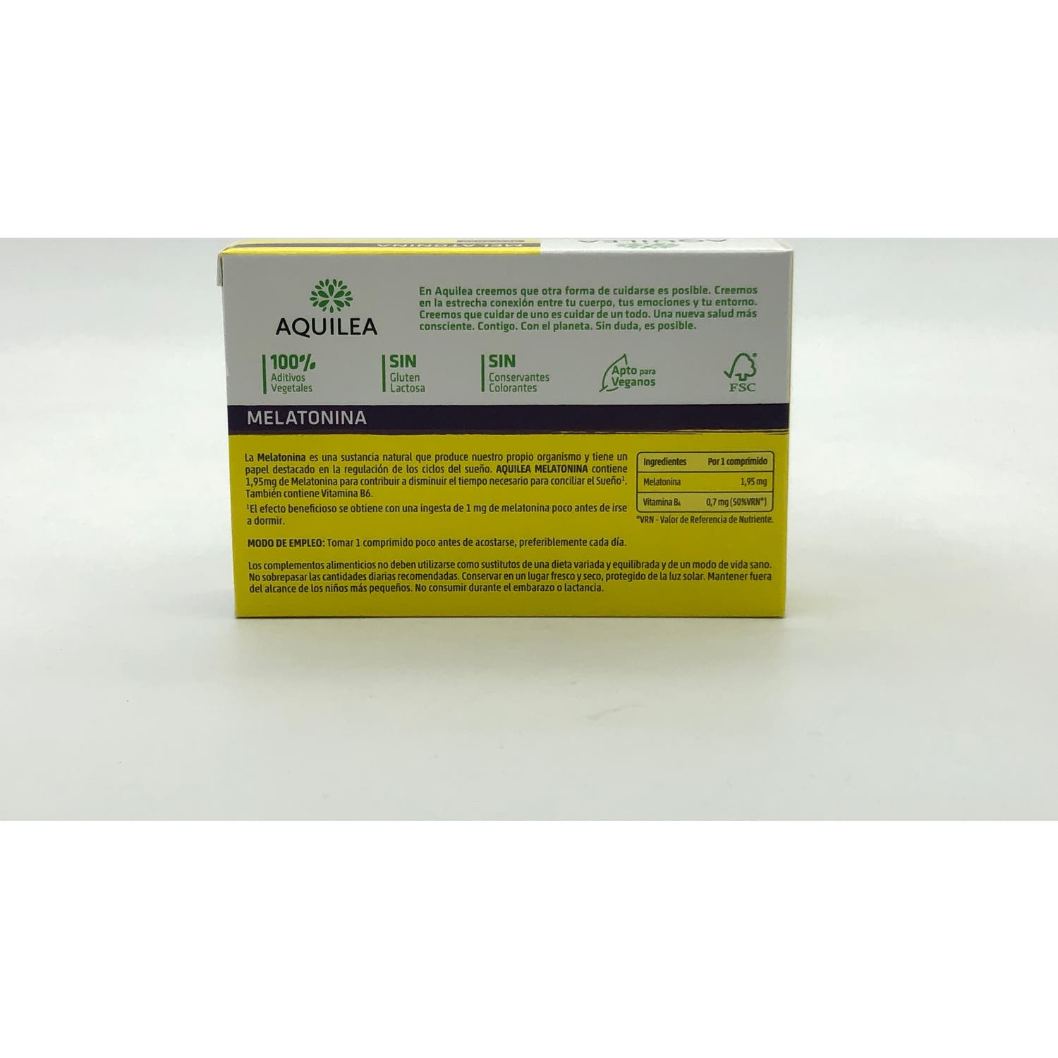 Aquilea Melatonina 1,95mg 60comp es un complemento alimenticio que contribuye a disminuir el tiempo para conciliar el sueño. Además, se recomienda para reducir la sensación subjetiva de desfase horario (jet lag).