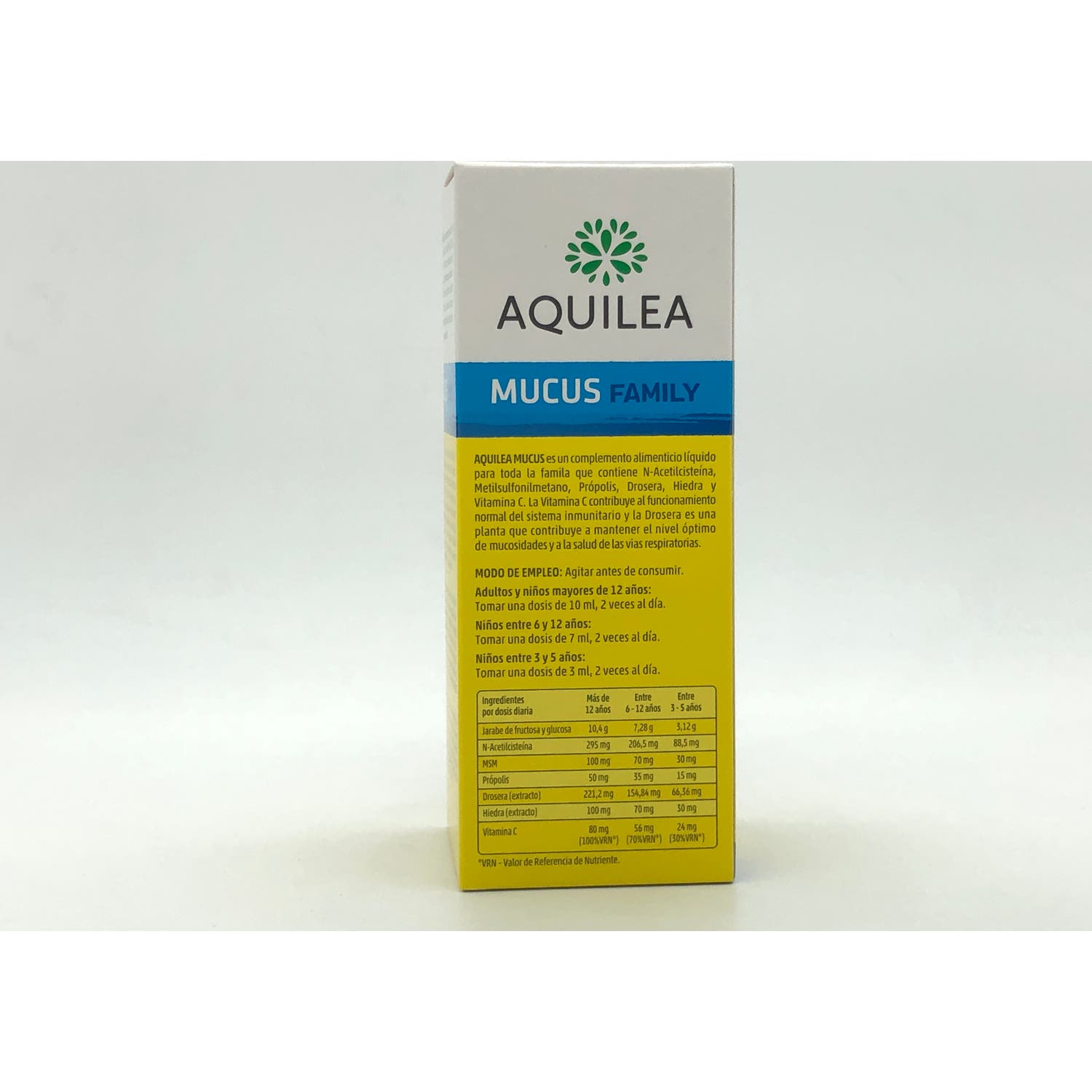 Ingredientes activos por 20ml: N-Acetilcisteína 295mg, MSM 100mg, Própolis 50mg, Extracto de Drosera 221,2mg, Extracto de Hiedra 100mg, Vitamina C 80mg (100% VRN*)