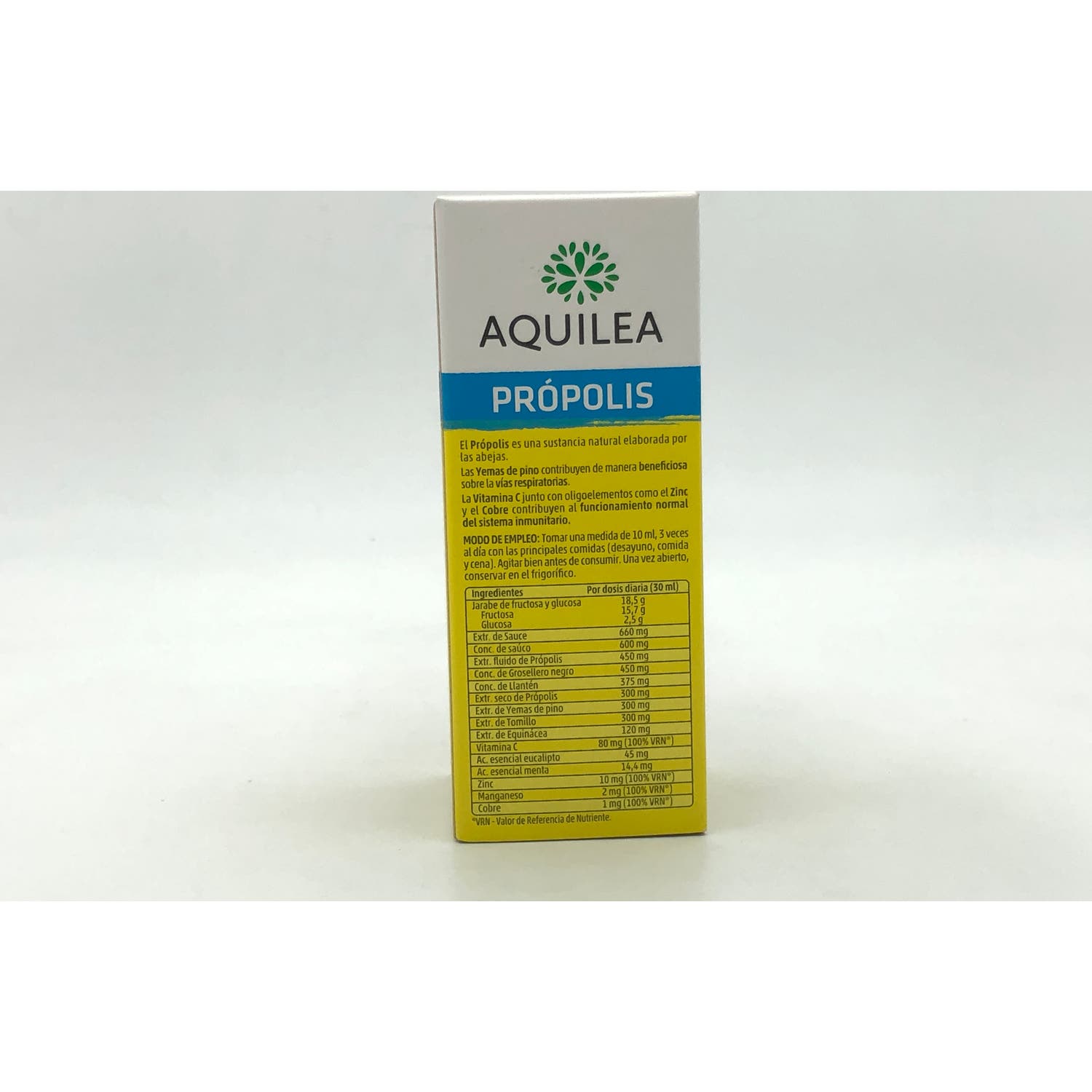 Elaborado a base de própolis, una sustancia natural elaborada por las abejas, además de una combinación de plantas como la equinácea y la vitamina C, que junto a oligoelementos como el zinc, el cobre y el magnesio, actúan sobre el mantenimiento de las defensas naturales, previniendo los procesos catarrales y los dolores de garganta.