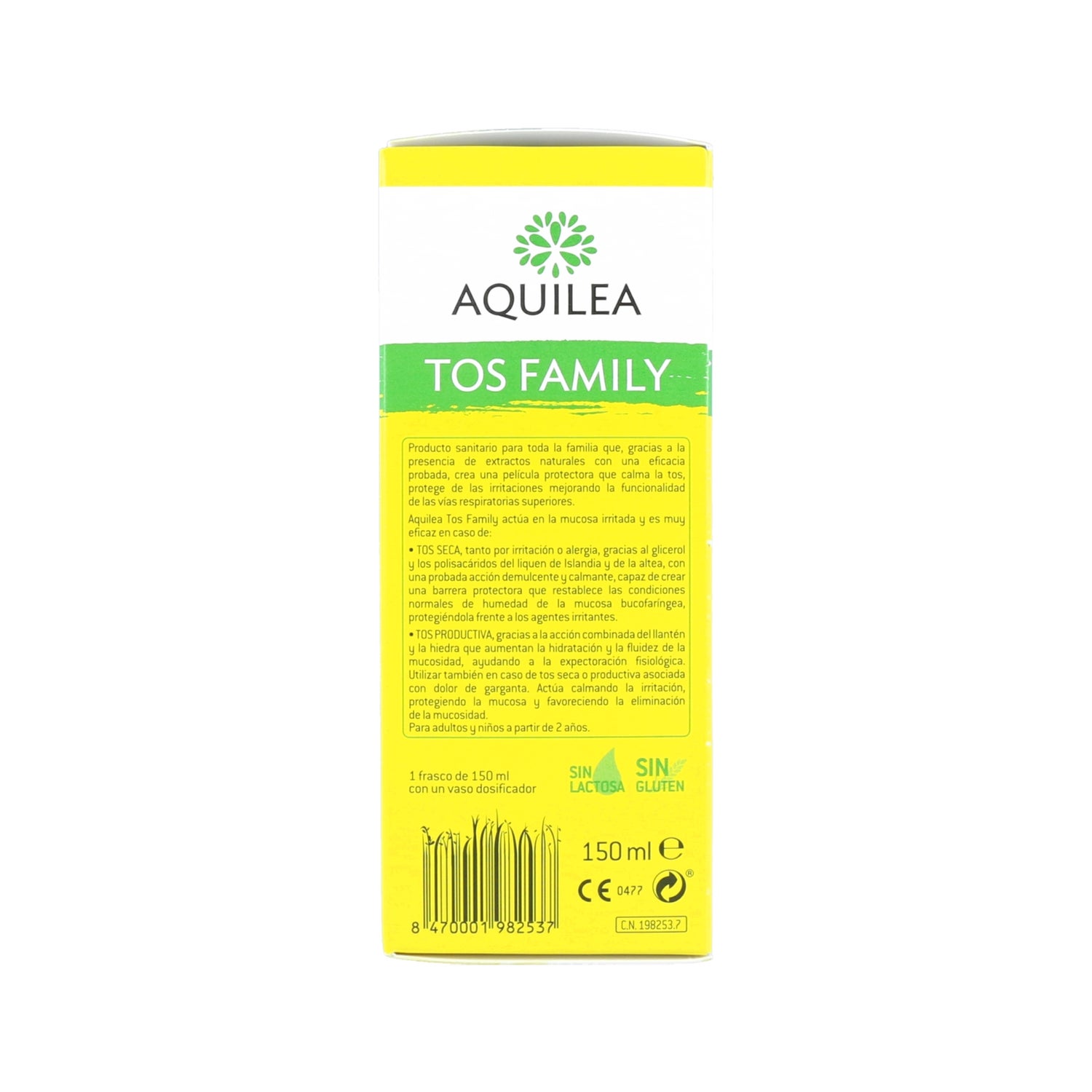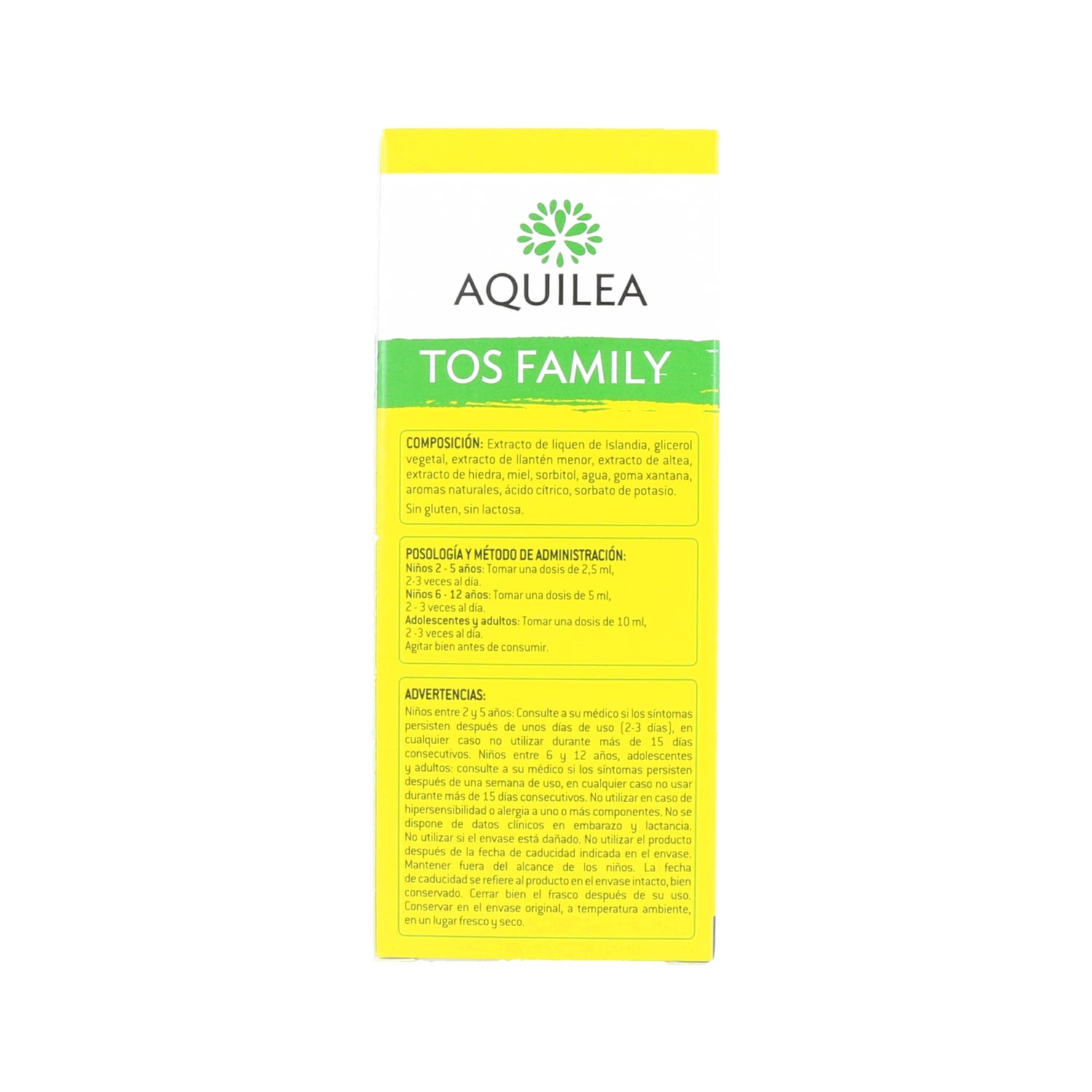 Aquilea Tos Family 150ml es un complemento alimenticio en formato jarabe que ayuda a calmar tanto la tos seca y la tos productiva, además de crear una película que protege las vías respiratorias.