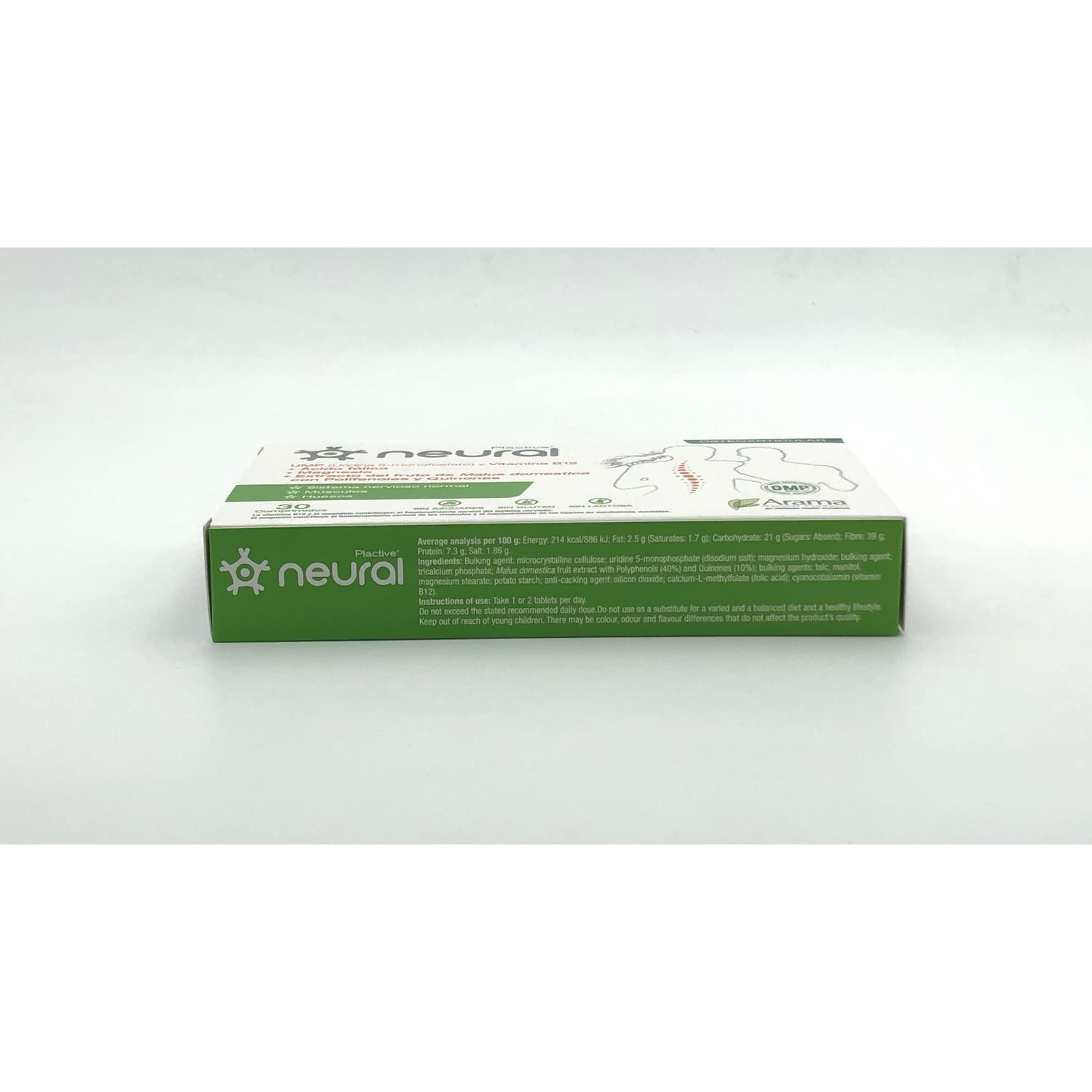Arama Plactive Neural 30comp es un complemento alimenticio que contribuye al funcionamiento normal del sistema nervioso, los músculos y los huesos.