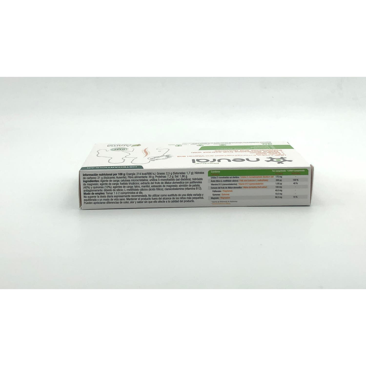 Su fórmula contiene uridina, esencial en la síntesis de la membrana celular de las neuronas y los nervios, así como quinonas, un neuroprotector con acción antiinflamatoria y magnesio que ayuda a la correcta salud de músculos y huesos, y también cuenta con vitaminas del grupo B.