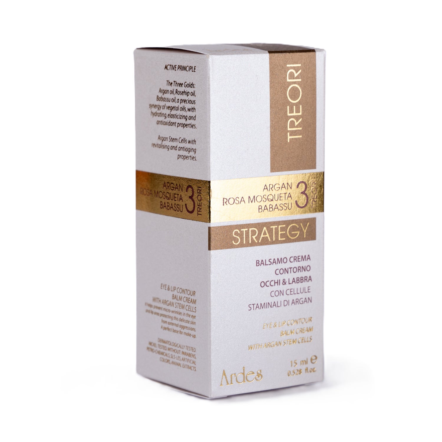 Ardes Cosmetici Strategy Tre Ori Contorno de Ojos & Labios es un bálsamo intensivo antienvejecimiento, especialmente formulado para prevenir y reducir las líneas de expresión y las microarrugas en las zonas delicadas de los ojos y los labios. Su composición ofrece un efecto lifting, aportando una hidratación profunda que fortalece la barrera cutánea, al tiempo que proporciona firmeza y luminosidad.