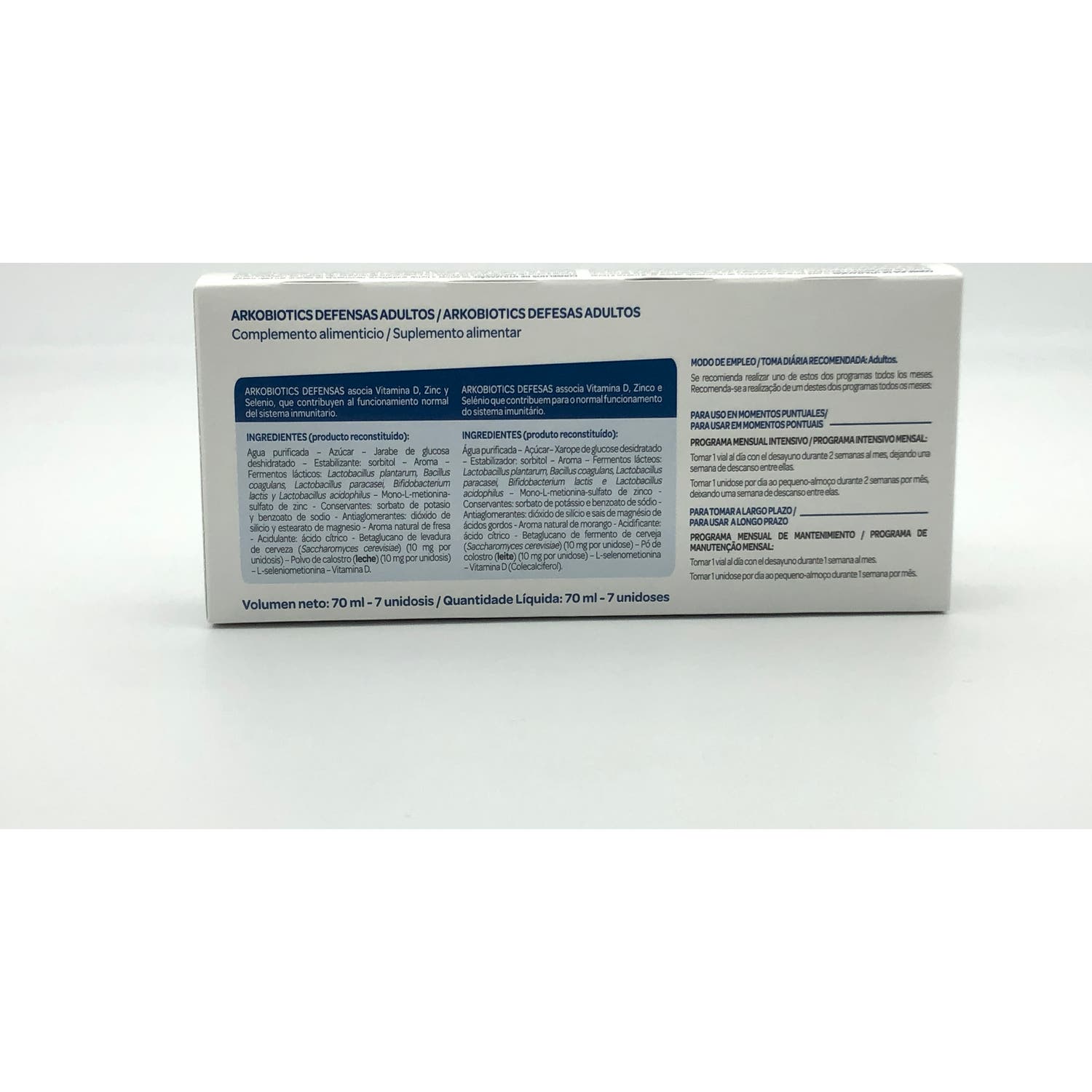 Arkopharma Arkobiotics Defensas Adultos 7uds es un complemento alimenticio a base de probióticos (fermentos lácticos vivos), vitamina D, Zinc y Selenio, que ayuda a reforzar las defensas, contribuyendo al funcionamiento normal del sistema inmunitario frente a gripes o resfriados, bajadas de defensas o cambios de estación.