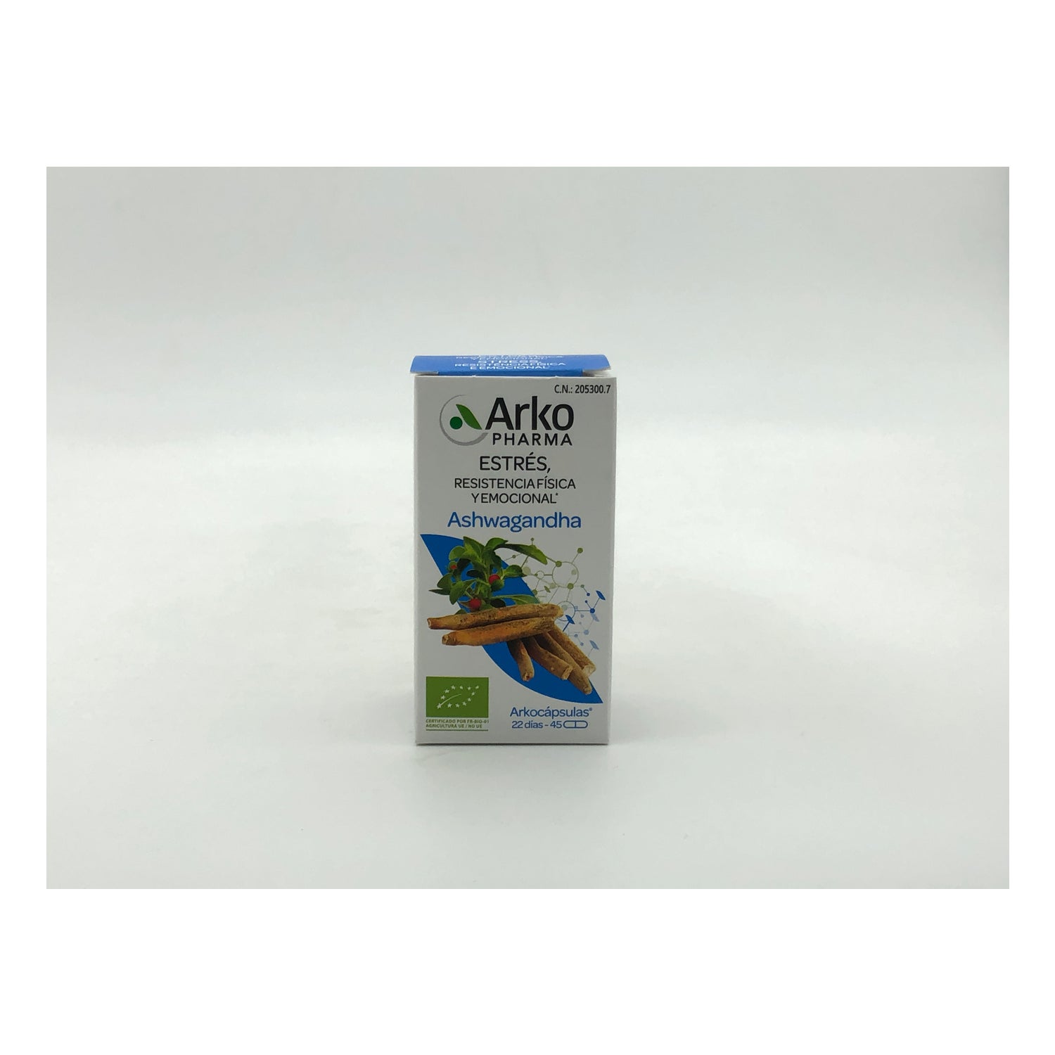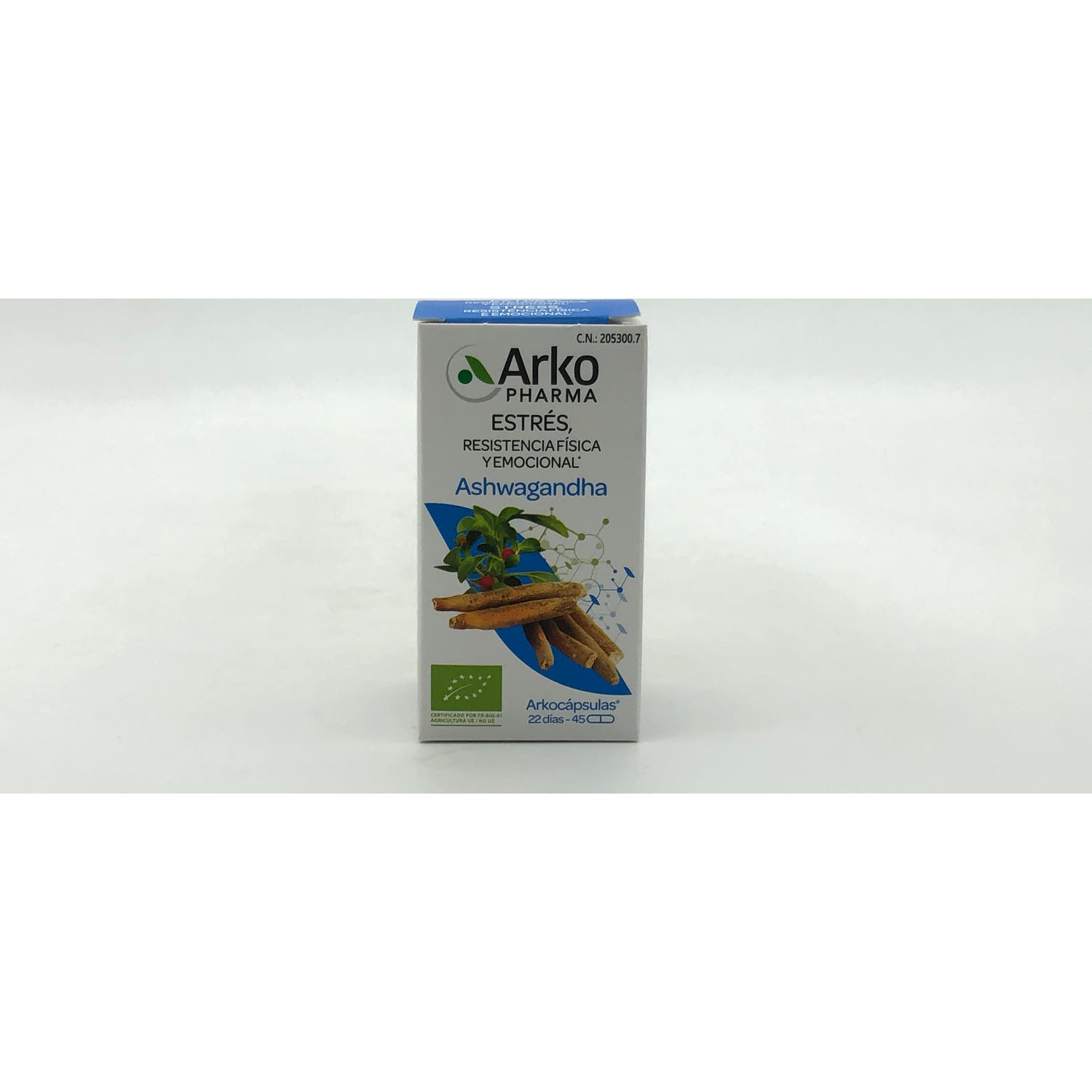 Arkopharma Arkocápsulas Ashwagandha BIO 45caps es un complemento alimenticio natural y ecológico que ayuda a resistir al estrés.