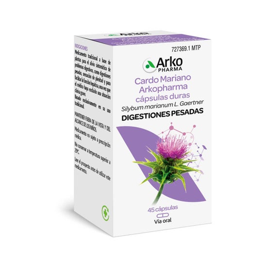 El cardo mariano (Silybum marianum) es una planta que contiene silimarina, una mezcla de diversas sustancias de interés y ampliamente estudiadas para el cuidado digestivo y hepático. También aporta flavonoides con acción antioxidante y ácidos grasos como el linoleico, oleico y palmítico.
