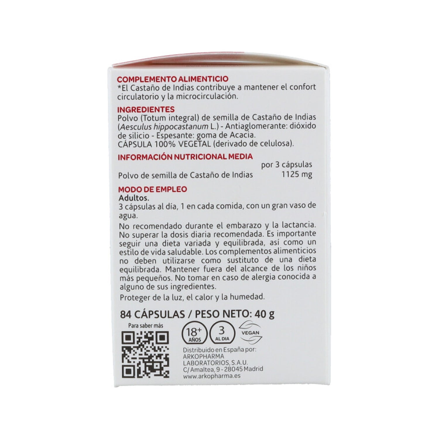 Arkopharma Arkocápsulas Castaño de Indias 84caps es un complemento alimenticio que ayuda a mantener la circulación y la microcirculación de las piernas.