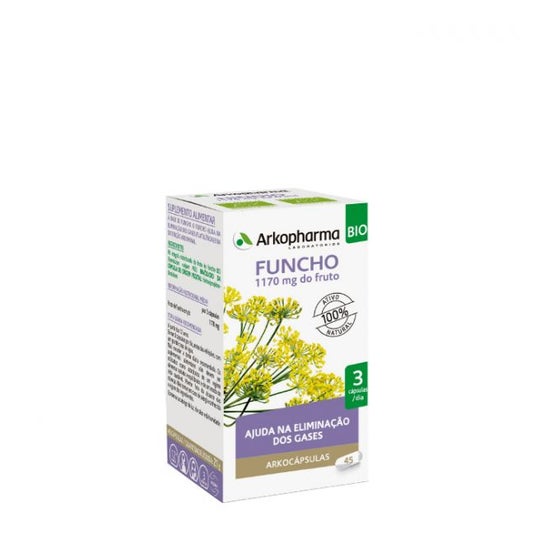 Arkopharma Arkocápsulas Hinojo 45caps es un complemento alimenticio natural que ayuda a eliminar los gases para calmar los calambres abdominales y reducir la hinchazón.