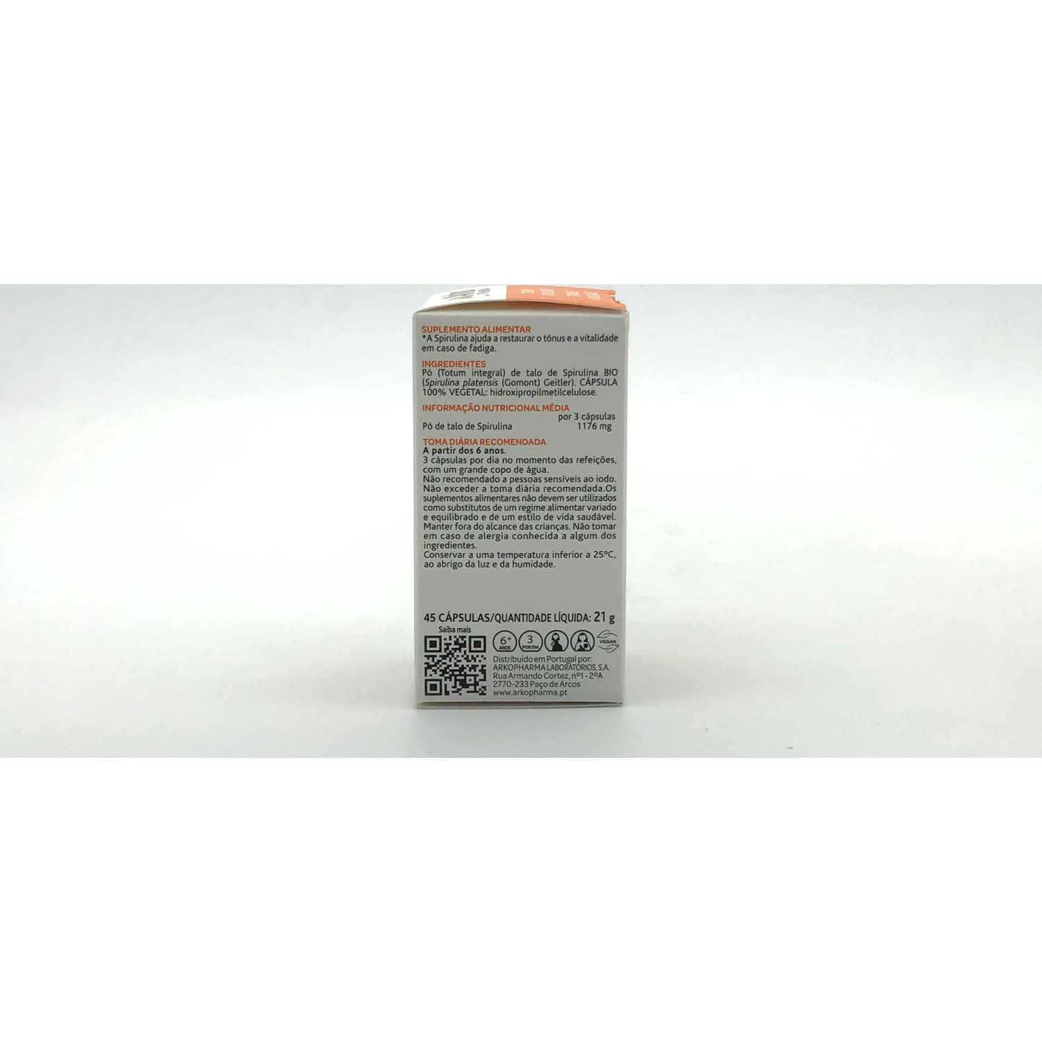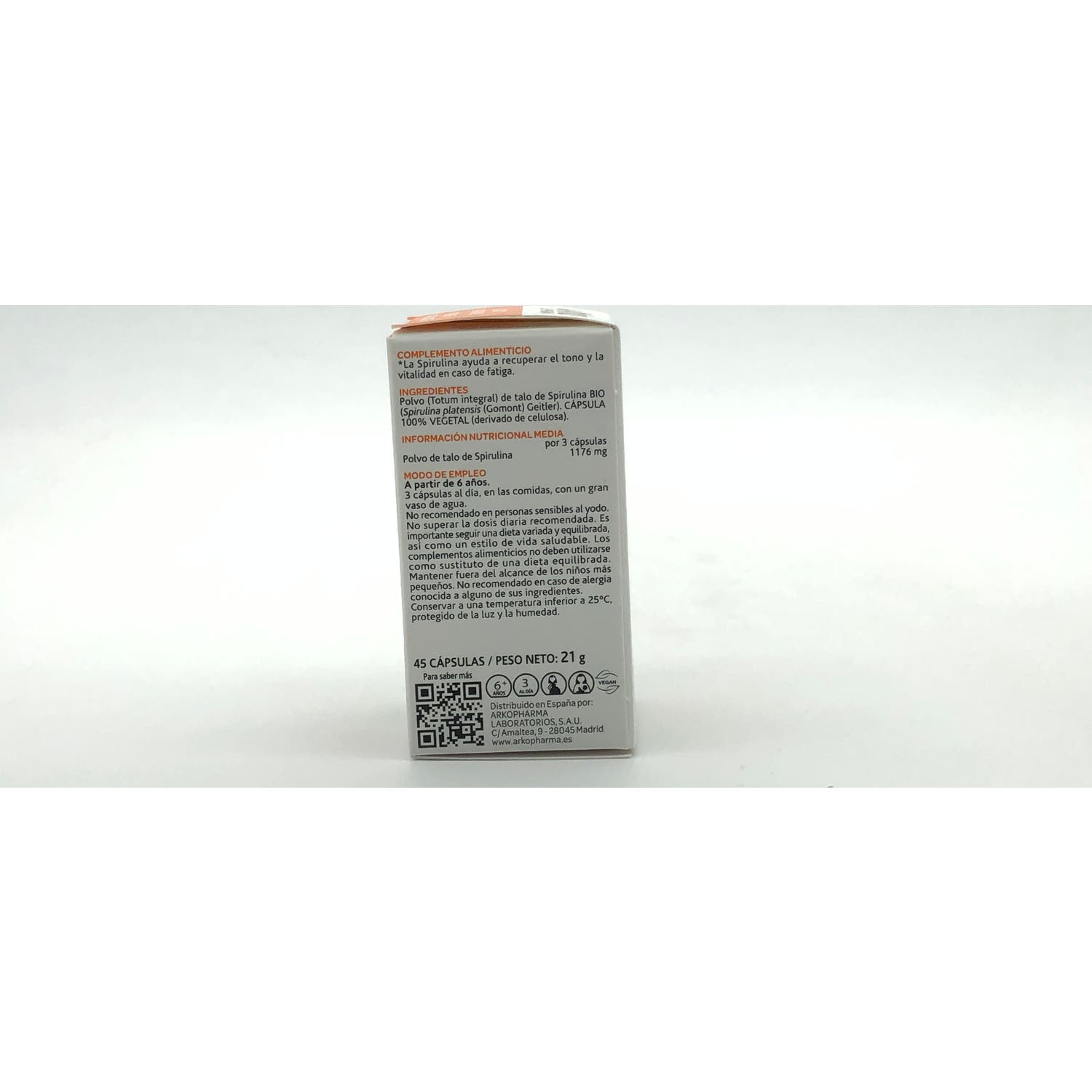 Arkopharma Arkocápsulas Spirulina BIO 45caps es un complemento alimenticio natural y ecológico diseñado para épocas de fatiga pasajera, ya que ayuda a recuperar el ánimo y la vitalidad.