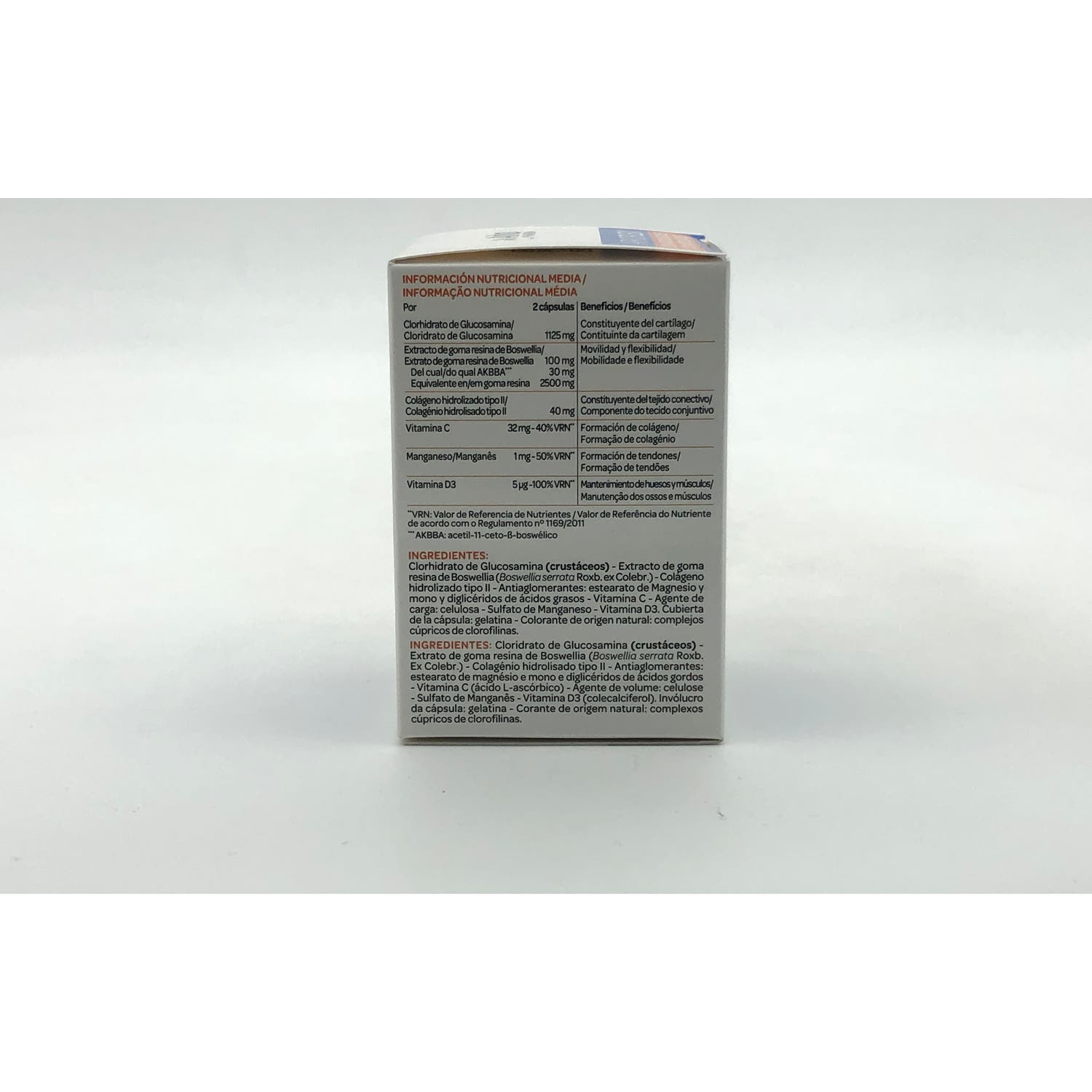 Formulado a base de vitamina C-D3, y manganeso. Además, un extracto de Boswellia, para el mantenimiento de la flexibilidad articular; y Glucosamina, constituyente esencial del cartílago y Colágeno tipo II específico para las articulaciones.