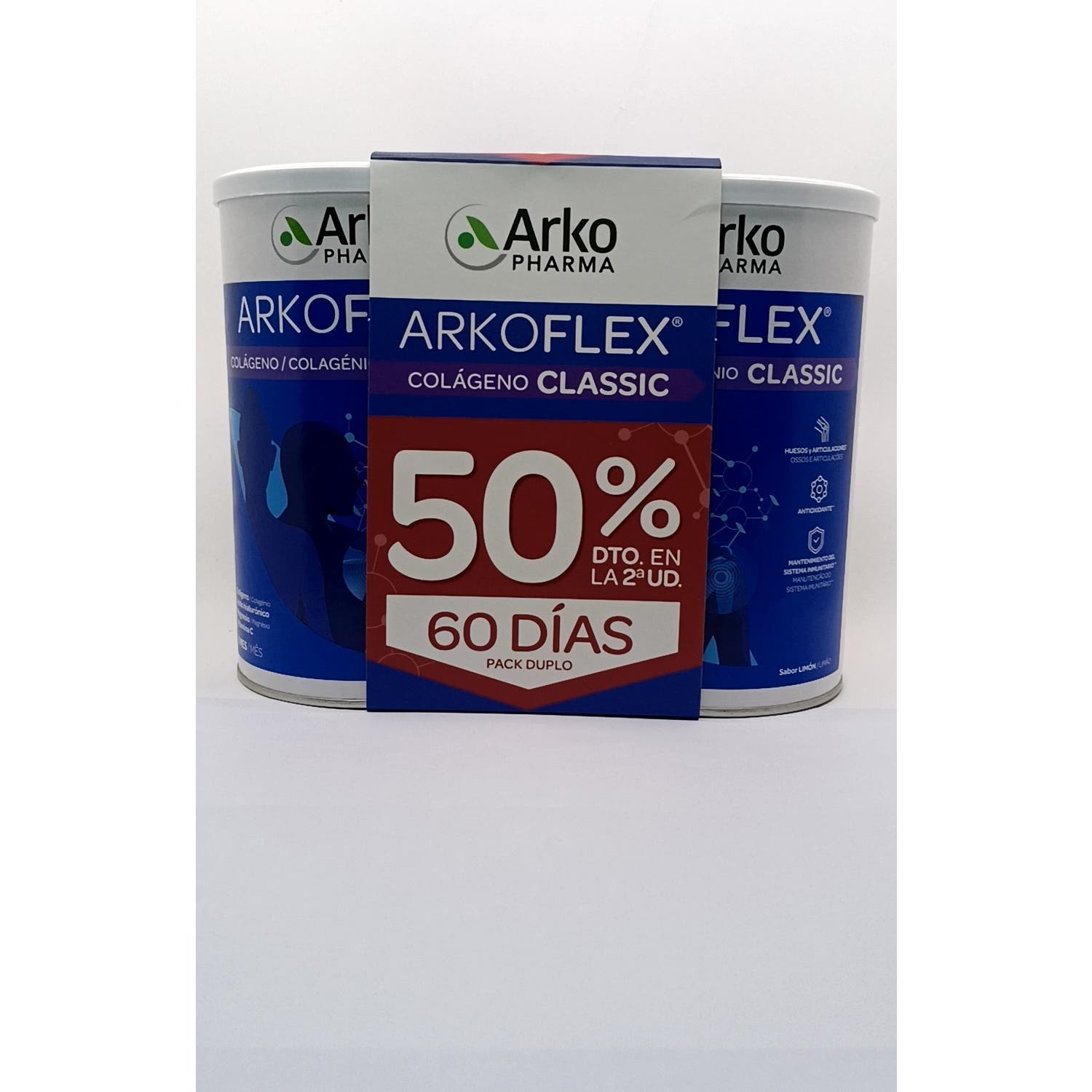 Arkopharma Arkoflex Colágeno Classic Limón 2x360g es un complemento alimenticio a base de colágeno hidrolizado especialmente elaborado para el cuidado de las articulaciones. Aporta la dosis necesaria de colágeno diaria ideal para mantener el adecuado cuidado de los huesos y las articulaciones. Además, mejora la elasticidad de la piel y promueve su firmeza.